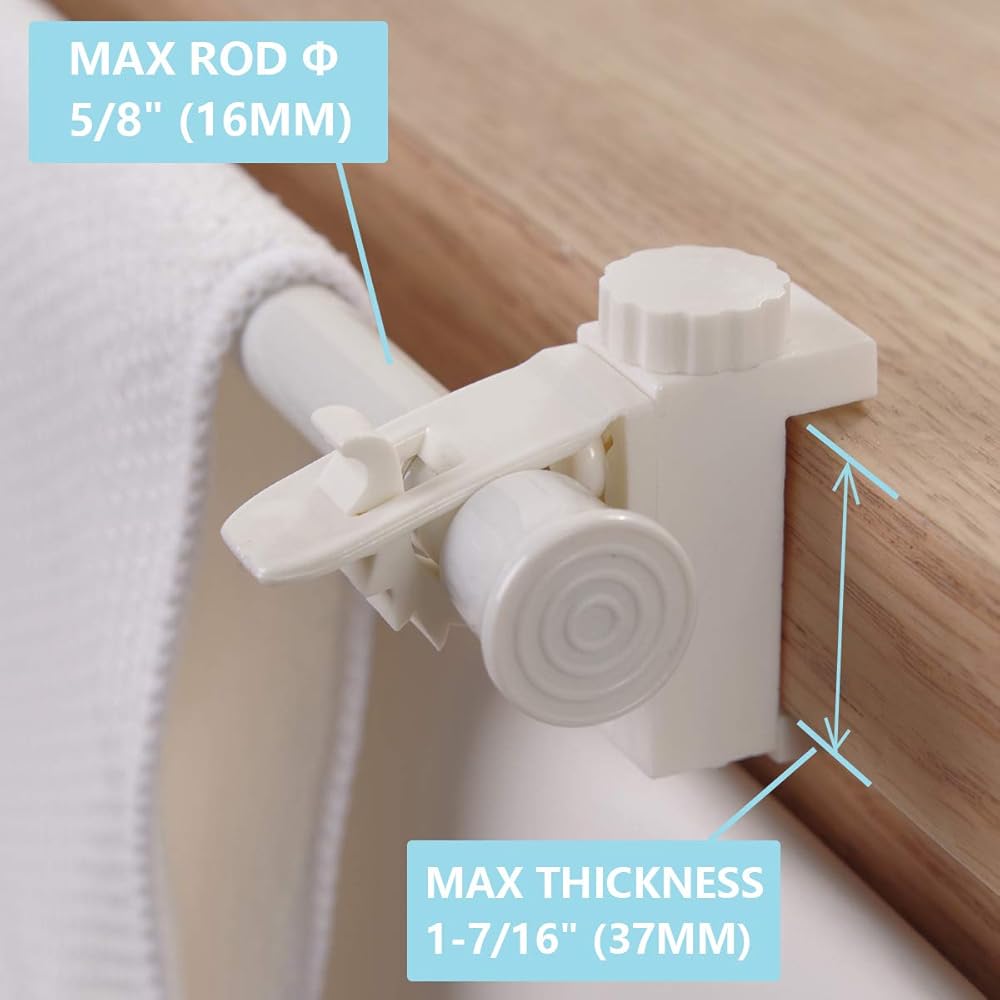 حوامل مشابك قابلة للتعديل من KXLIFE، دعامات قضيب ستارة بدون حفر، دعامات خطاف ستائر، شماعات قضيب الستارة، حامل قضيب التثبيت (4 قطع)