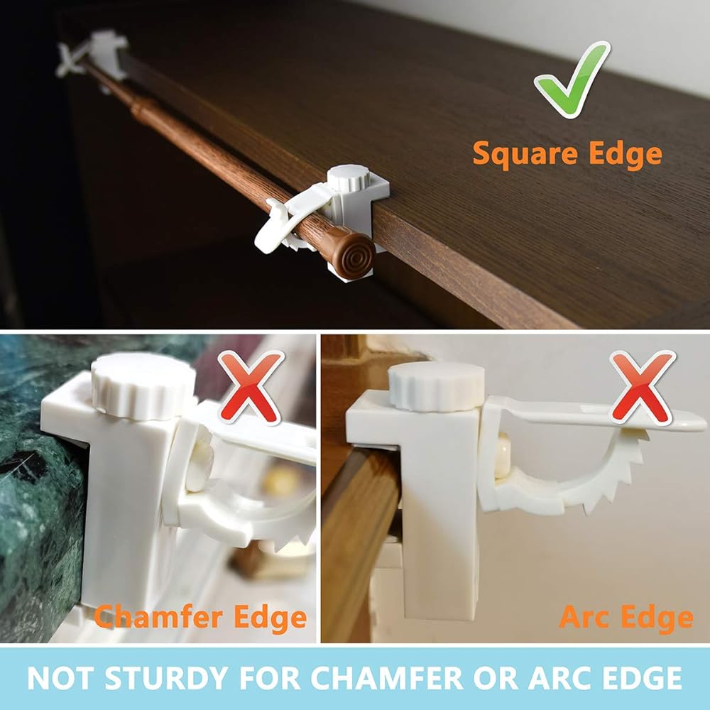 Note: suitable for rods up to 5/8 inch in diameter, available installed frame has thickness of less than 1-7/16 inch (37mm)Note: the clamp holder is only suitable for SQUARE edge, NOT STURDY for CHAMFER and ARC edgeABOUT US