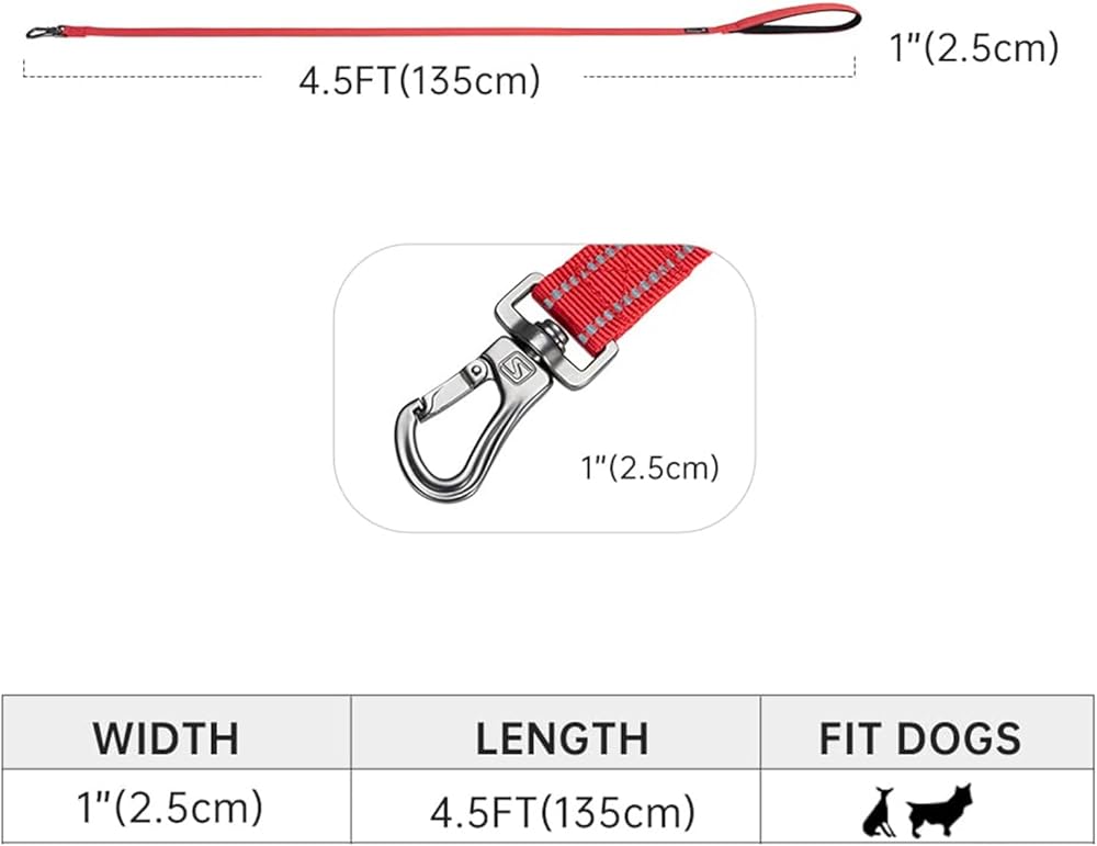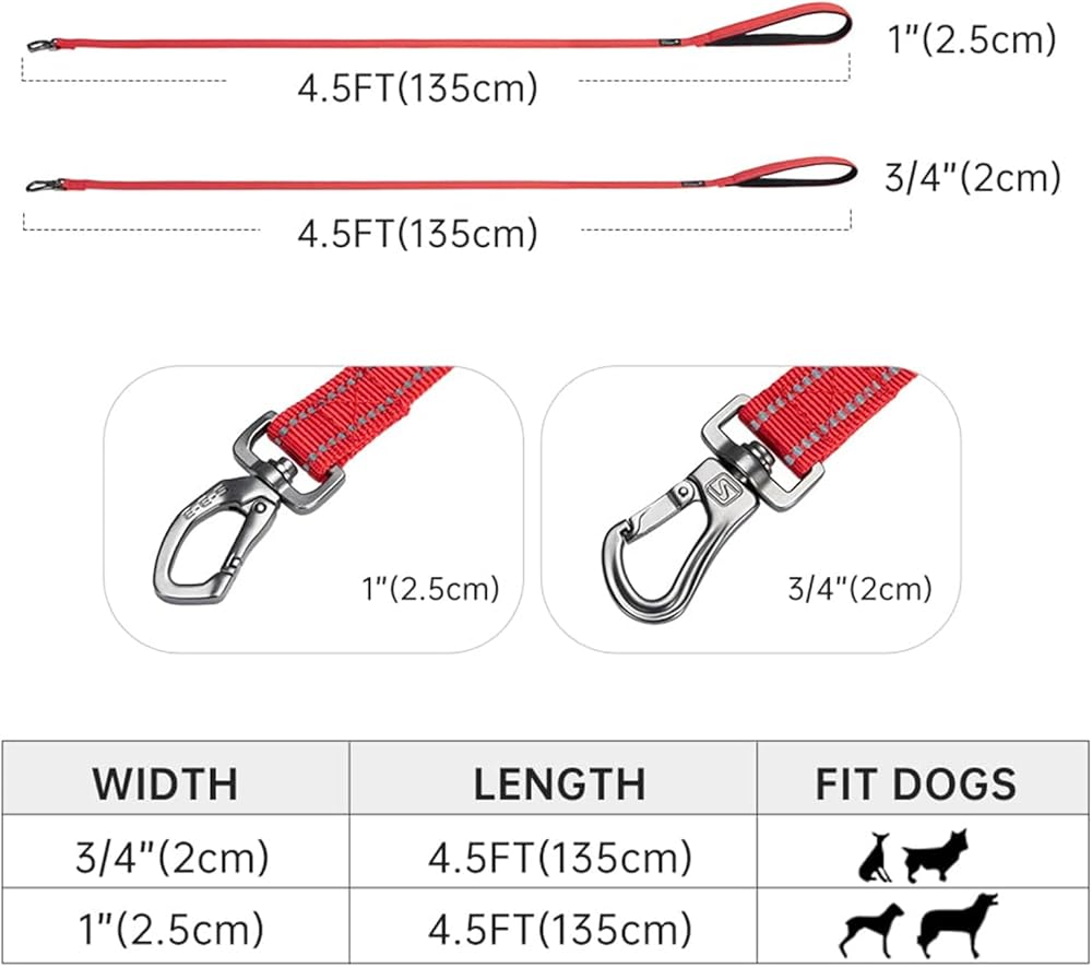 الطول المثالي: مقود الكلاب بطول 4.3 قدم هو التوازن المثالي بين الحرية والتحكم. يمكن أن يمنح كلبك قدرًا كبيرًا من الحرية ولكن لا يزال تحت سيطرتك السهلة. والإصدار بعرض 3/4 بوصة يناسب الكلاب الصغيرة و1.0 بوصة مناسب للكلاب المتوسطة والكبيرة.