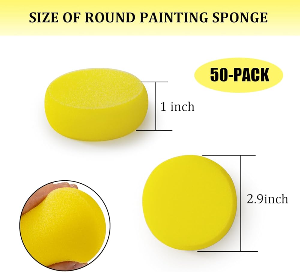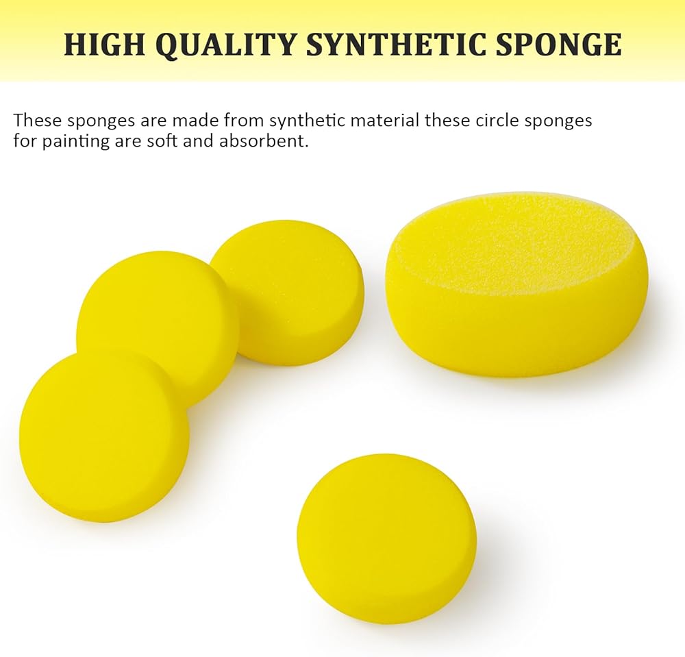 50 Pack Yellow Painting Sponges, 3 Inch Watercolor Synthetic Sponge Artist Sponge Round Sponges for Face Painting, Watercolor, Crafts, Pottery, Clay, Ceramics