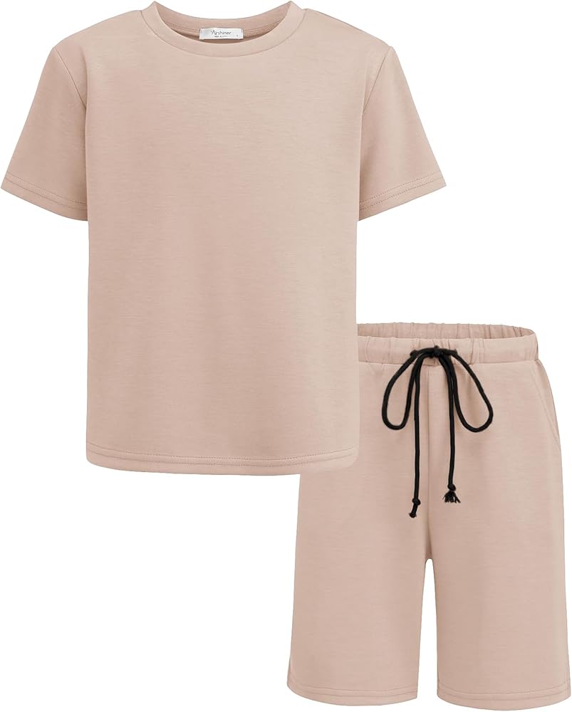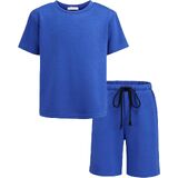 3 قطع ملابس متطابقة: تي شيرت للأولاد بأكتاف منسدلة + شورت بخصر برباط + قلادة بسلسلة.
