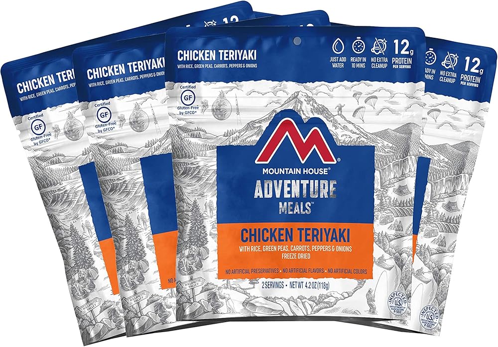 Chicken Teriyaki has to be done right. You need bamboo shoots and real chicken with the right teriyaki sauce. If you're looking for the best tasting, quick-prep chicken teriyaki for your next trip outdoors, look no further. Simple and easy to make, just add water and in 8-10 minutes you'll have a hot, hearty meal you can enjoy anywhere. Plus, Mountain House Chicken Teriyaki contains no artificial preservatives, flavors or colors and is certified gluten-free by GFCO. Plus, backed by a 30-Year Taste , Mountain House meals are also great for emergency food storage. Delicious. Dependable. Mountain House has you covered no matter the adventure. Mountain House Adventure Meals, perfect for on-the-go, camping and backpacking. We take the water out, you simply put it back in. Case contains four 2-serving pouches.