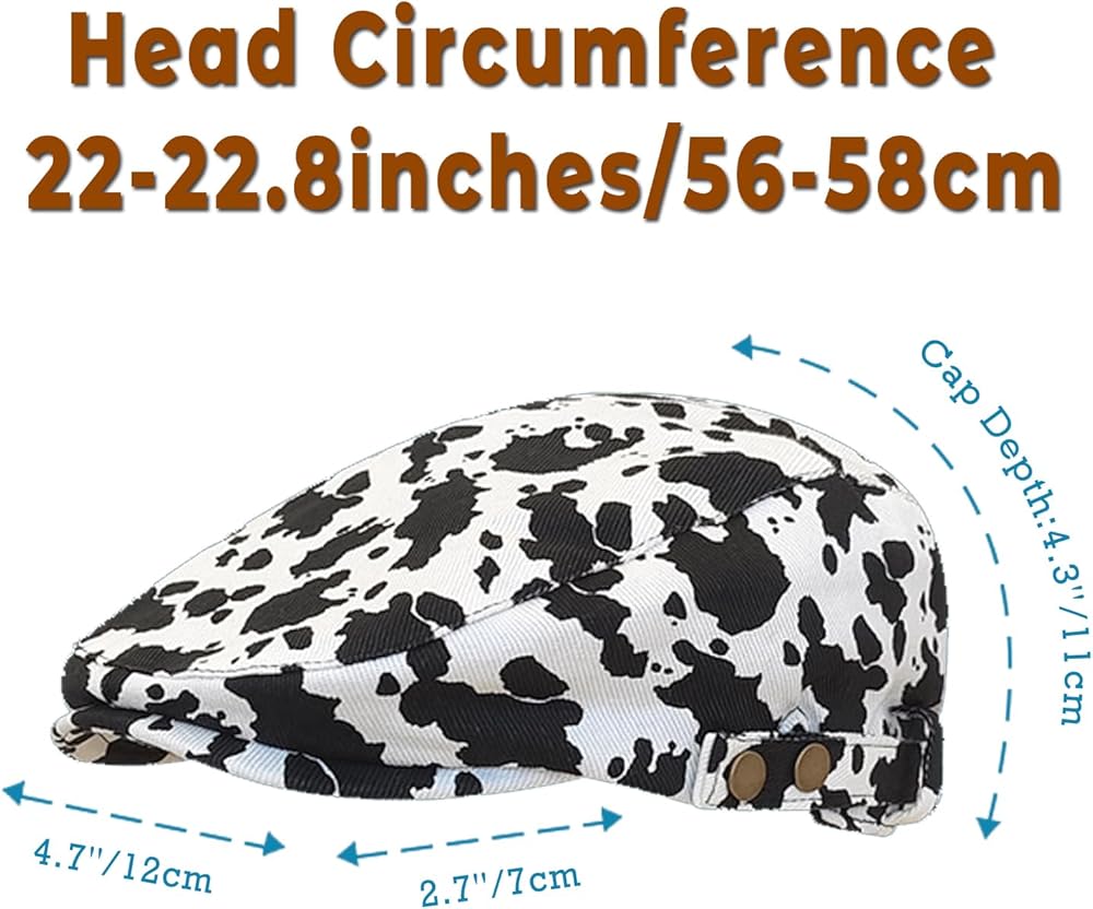 🐮【قبعة كابي بنمط البقرة】تصميم قبعة موزع الصحف هذه بنمط بقرة أبيض وأسود عتيق. سيضفي هذا لمسة خالدة على ملابسك ومظهرك ليجعلك تبدو أنيقًا ورائعًا دون عناء؛