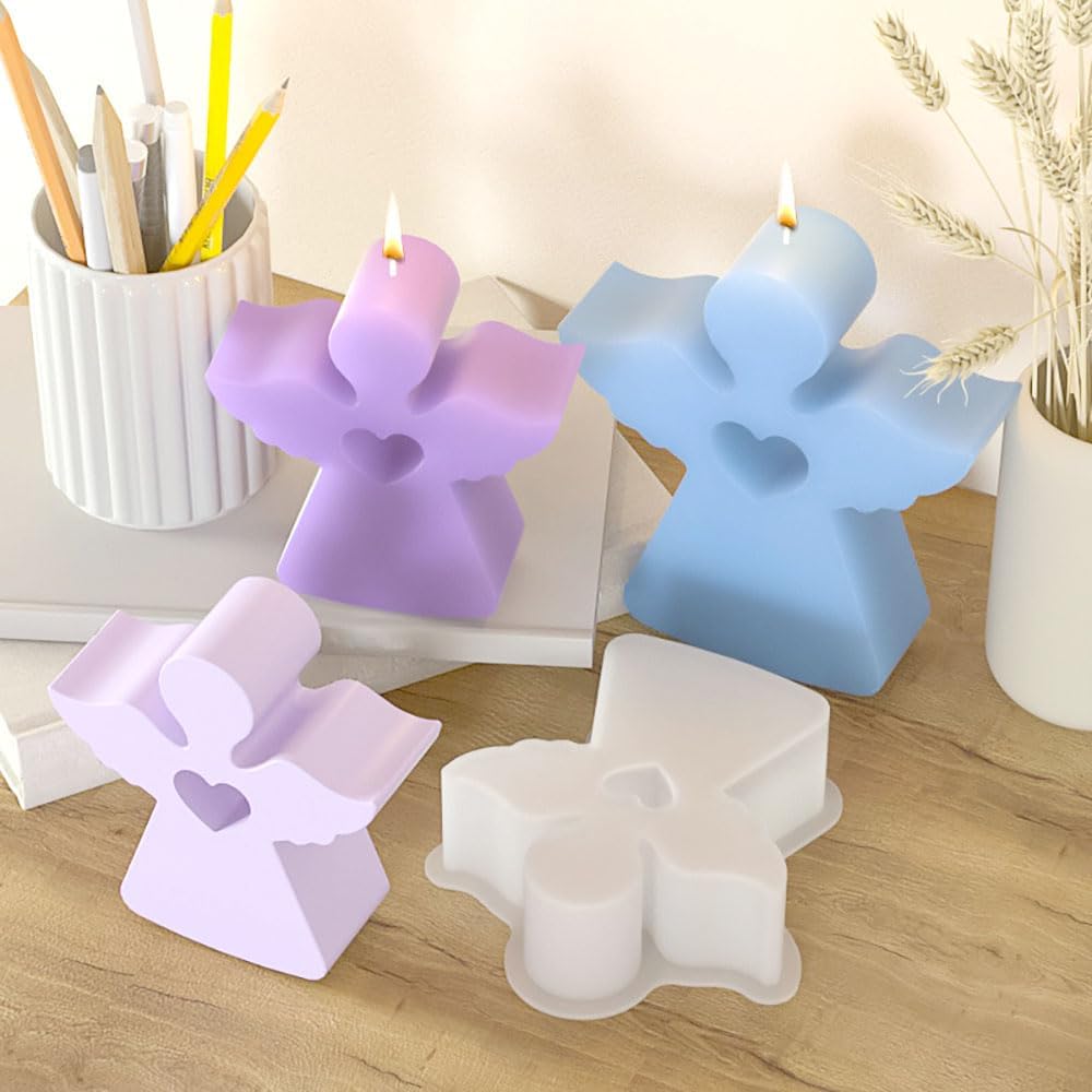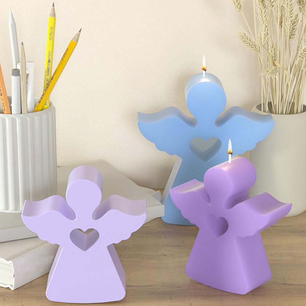 • 【Candle Molds for Candle Making】Adorable heart angel silicone molds are perfect for making scented candles, When you use them to make candles, just punch a hole in the top of the angel mold head with a needle, fix the wick in the center of the mold, then pour in the melted wax and wait for it to form, when the contents are fully cured, demould to get the candle.