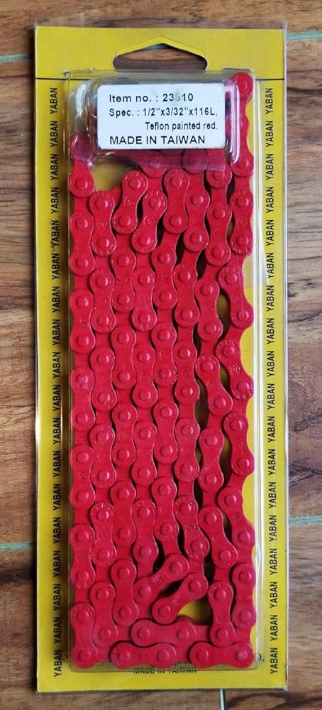 سلسلة تفلون للدراجة Yaban 6/7/8 سرعات 1/2 بوصة × 3/32 بوصة 116 لتر، 18/21/24 سرعة MTB/الطريق - تفلون مطلي باللون الأحمر in Kuwait
