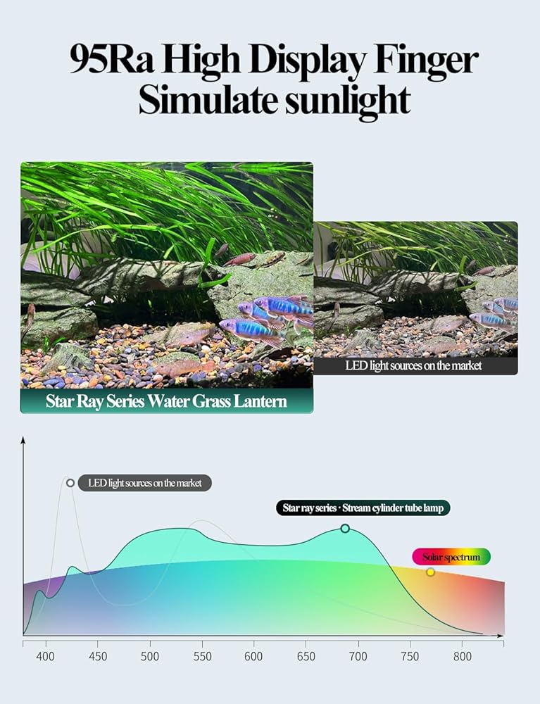 • 【CRI عالية ودرجة حرارة اللون العالية 】CRI: 95Ra، يحاكي ضوء الشمس، وينبعث الطيف الكامل من الأطوال الموجية من 380 نانومتر إلى 780 نانومتر، مما يجعل خزان الأسماك أكثر طبيعية وأكثر تشبعًا؛ درجة حرارة اللون 7500 كلفن تجعل العشب الأخضر أكثر إشراقًا والعشب الأحمر أكثر احمرارًا. خرزات مصباح ذات نسبة ذهبية مثالية، ألوان واضحة ومشرقة ومشرقة.