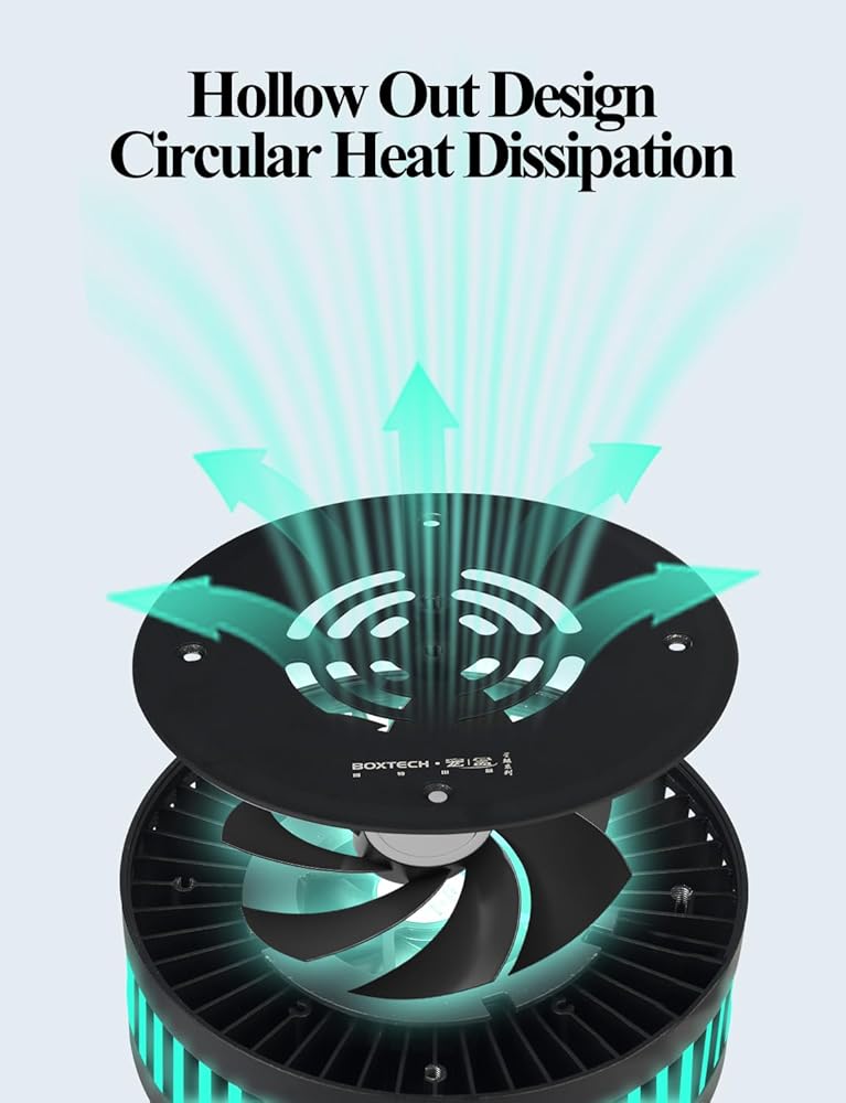 • 【تبديد فعال للحرارة】تبديد الحرارة بواسطة مروحة تقليل الضوضاء، نظام تبريد هواء مشعاع مدمج من سبائك الألومنيوم، تصميم أخدود تبديد حرارة زعنفة حلقية 360 درجة، مما يزيد بشكل كبير من منطقة تبديد الحرارة، ويقلل بشكل فعال من توهين الضوء، ويكون متينًا. محول الطاقة آمن للاستخدام وموفر للطاقة.