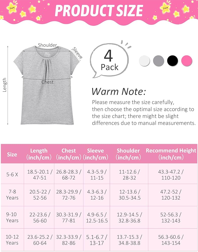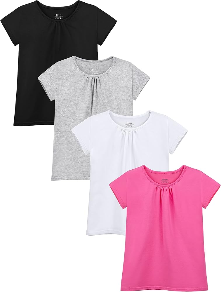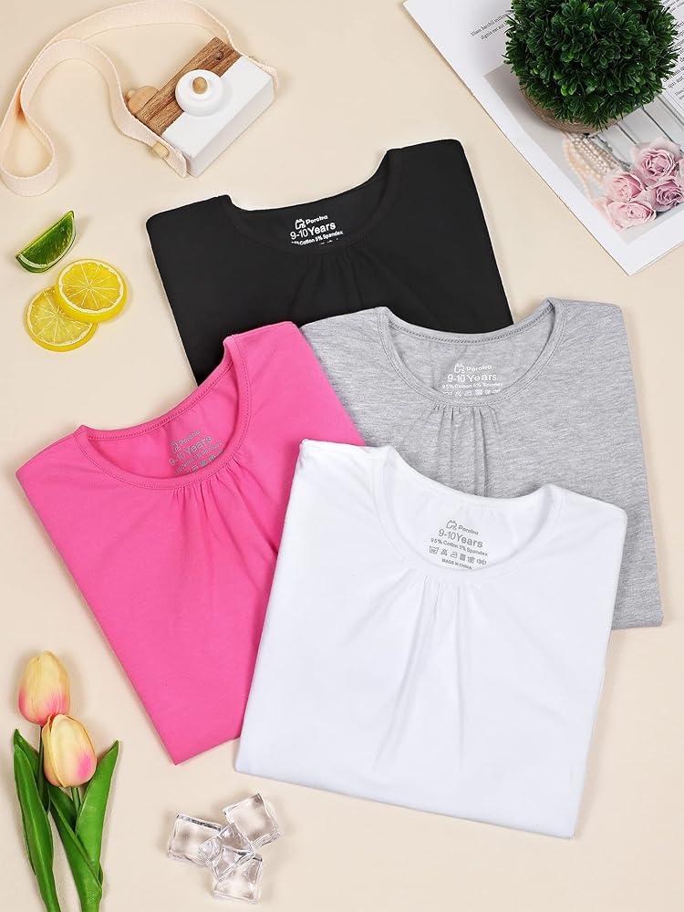 ما ستحصل عليه: تأتي العبوة مع 4 عبوات من التيشيرتات الصيفية قصيرة الأكمام للفتيات بأربعة ألوان مختلفة، بما في ذلك الأسود والأبيض والرمادي والأبيض والوردي الفاتح الفاتح والكلاسيكي ومتعدد الاستخدامات؛ كميات كافية وألوان مختلفة كافية لتلبية احتياجات الارتداء اليومي والاستبدال