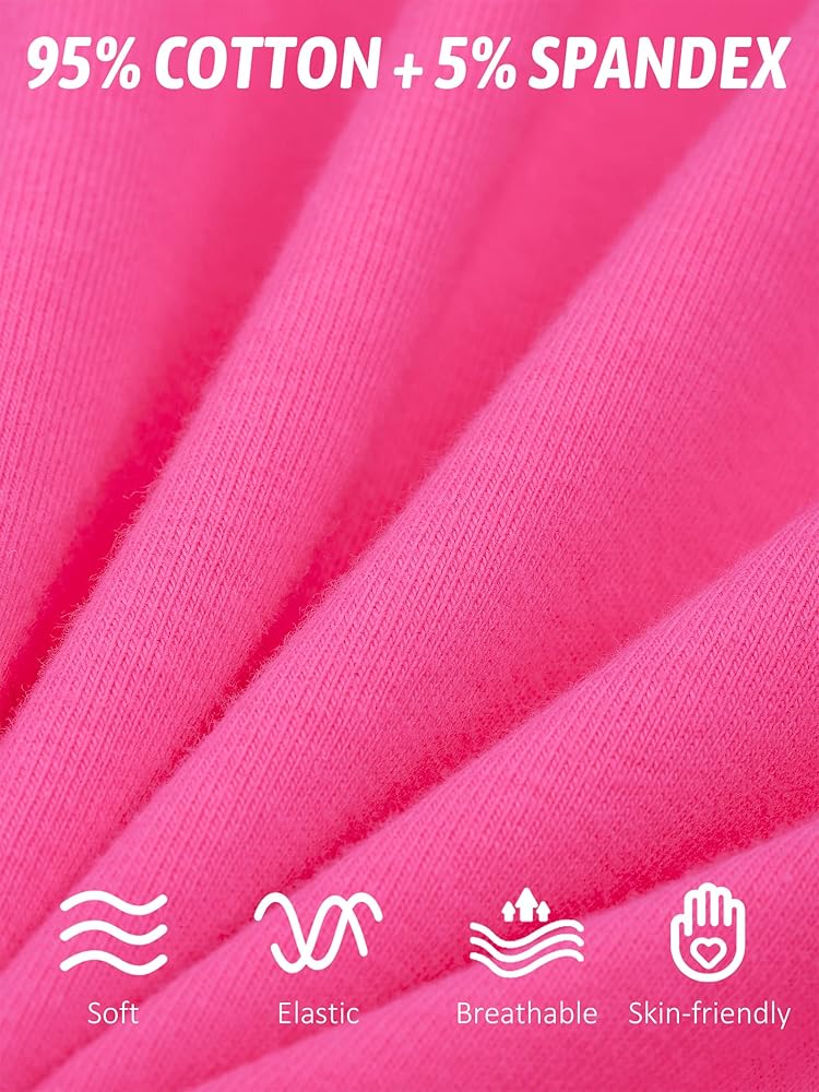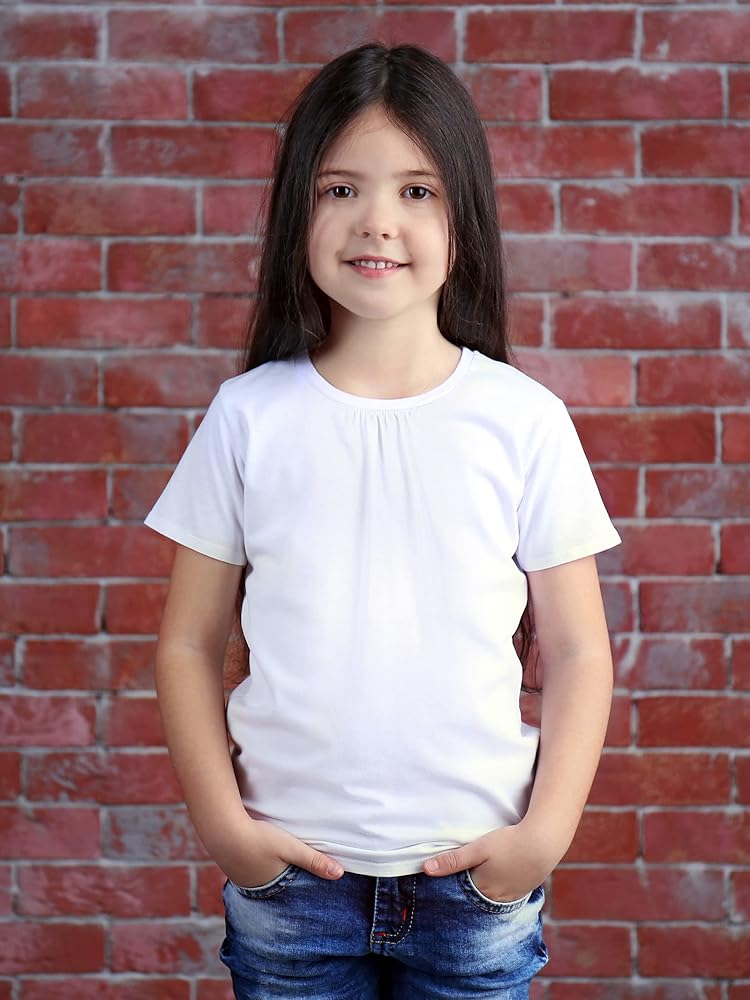 خامة رائعة: مصنوع من 95% قطن عالي الجودة و5% ألياف لدنة، تي شيرت للفتيات ذو رقبة دائرية وأكمام قصيرة ناعم وصديق للبشرة وجيد التهوية، ويعمل بشكل جيد في امتصاص الرطوبة والتعرق، مما يوفر للفتيات ارتداءً مريحًا خبرة