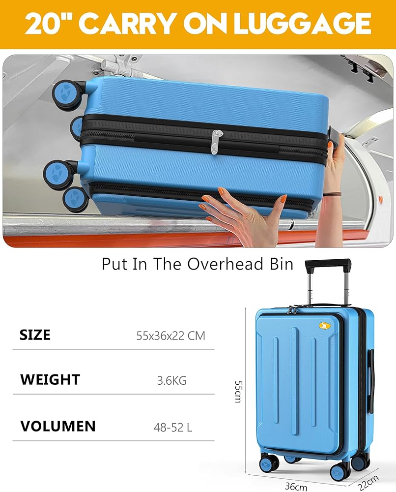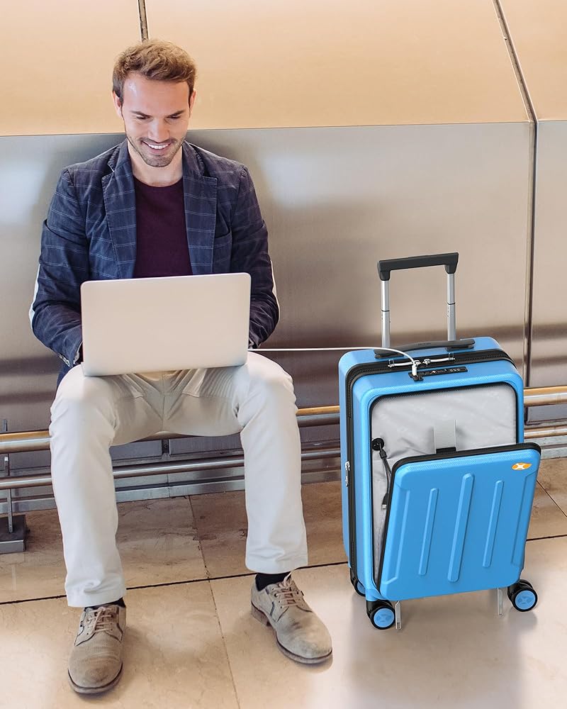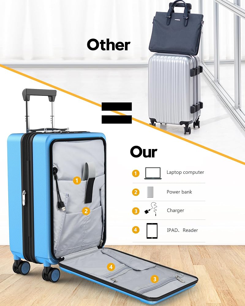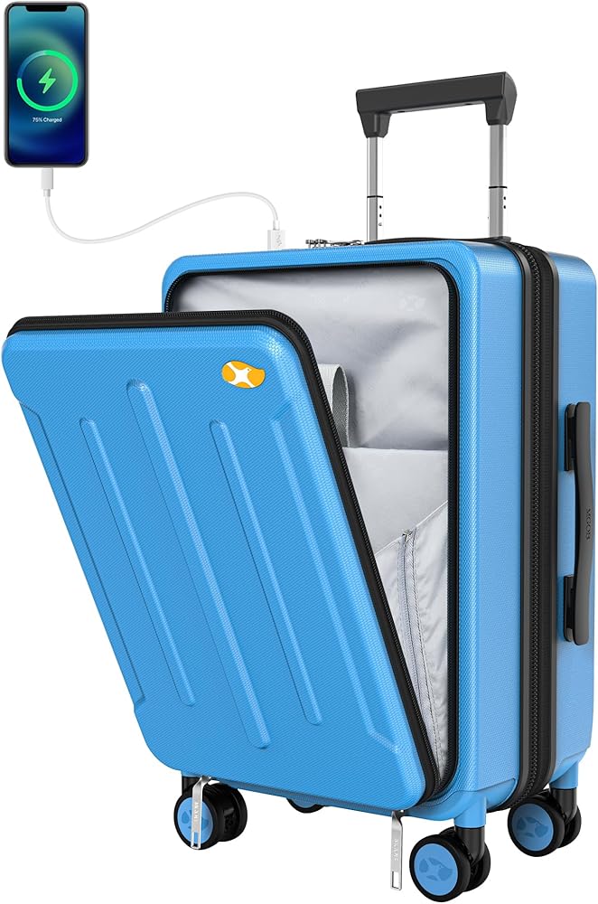 Carry On Luggage with Front Pocket - Polycarbonate Hard Shell Suitcase with USB Port