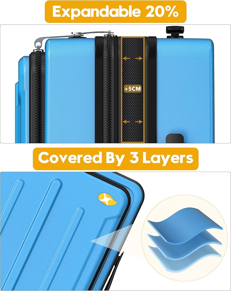 • Durable Protection: Crafted from 100% PC material, our hardshell suitcases offer superior abrasion resistance and scratch-resistant textured design, ensuring your belongings are safe and secure throughout your journey