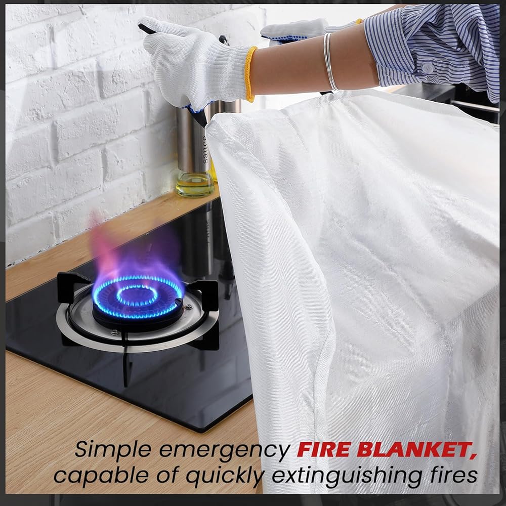 Fire Safety Kit: our fire blanket is an indispensable part of your fire safety arsenal; Combining the fireproof blankets, gloves, emergency whistles, and sturdy stainless steel hooks, this set is an all encompassing tool for emergencies; The fire retardant blankets can be hung within reach in spaces prone to fire outbreaks like the kitchen, fireplace, stove, or grill