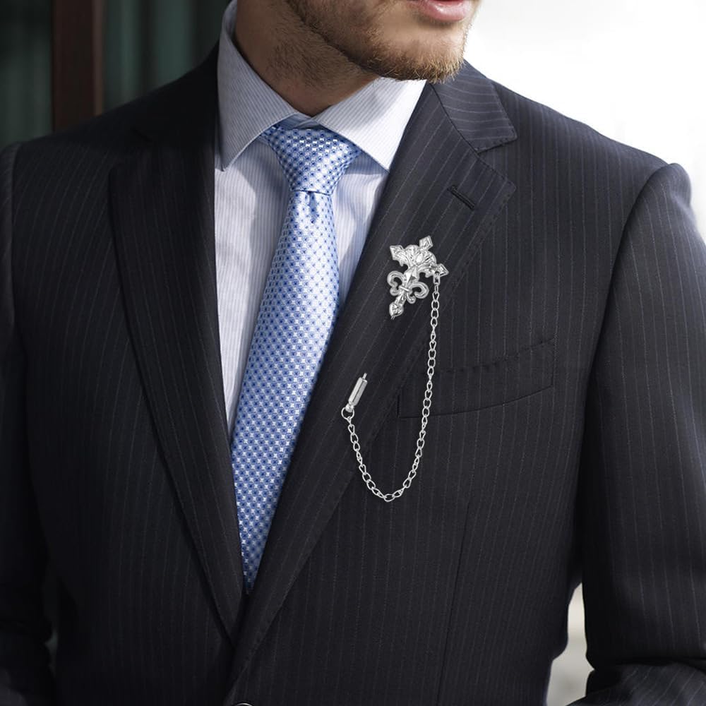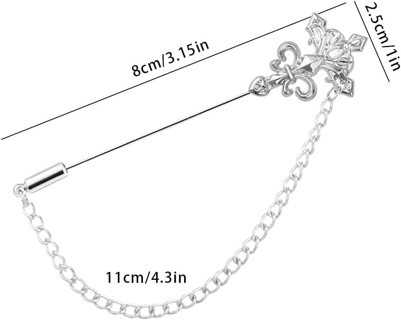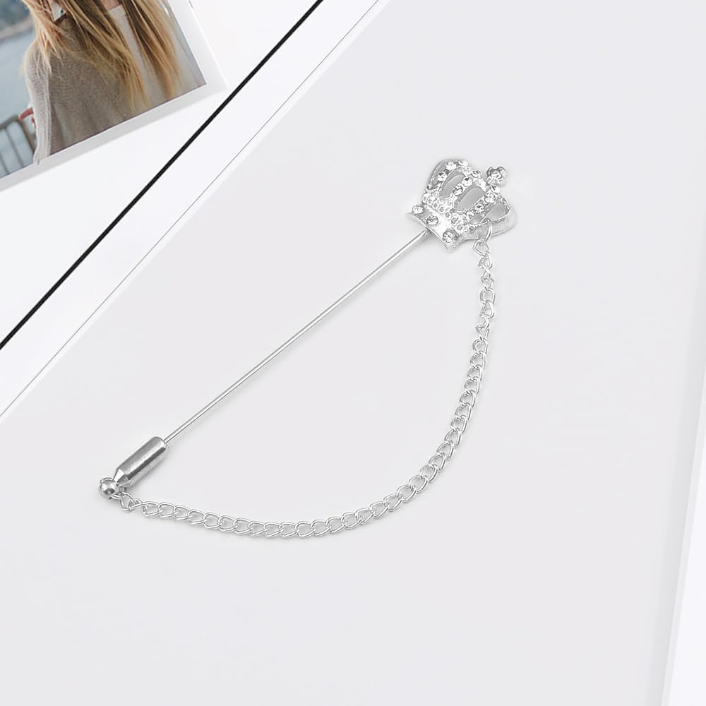 1 Silver Crown Lapel Tassel Pin Chain Brooch