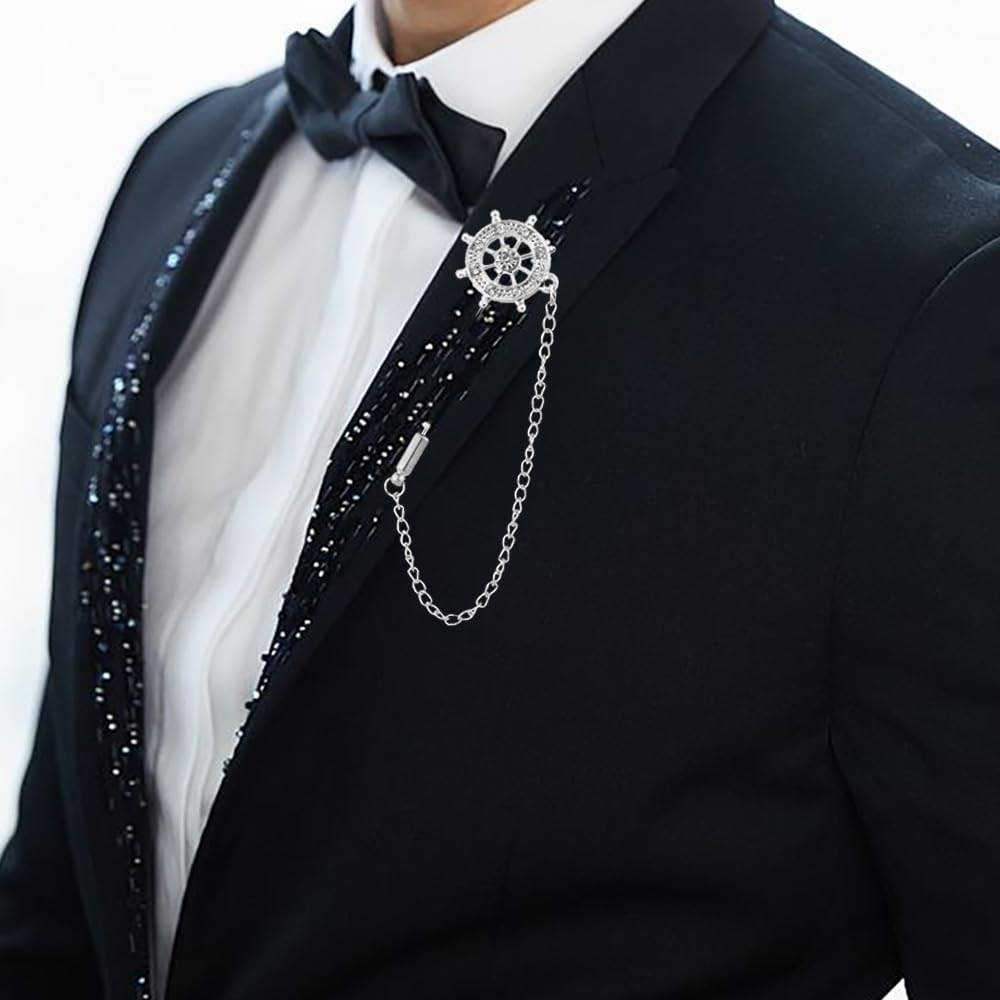 1 Silver Rudder Lapel Tassel Pin Chain Brooch