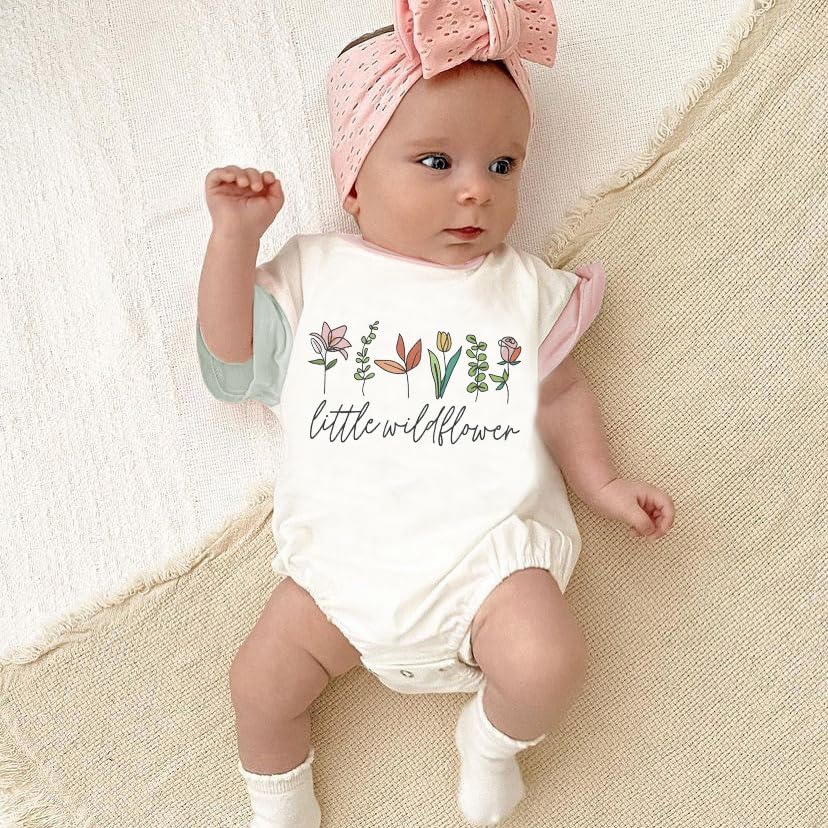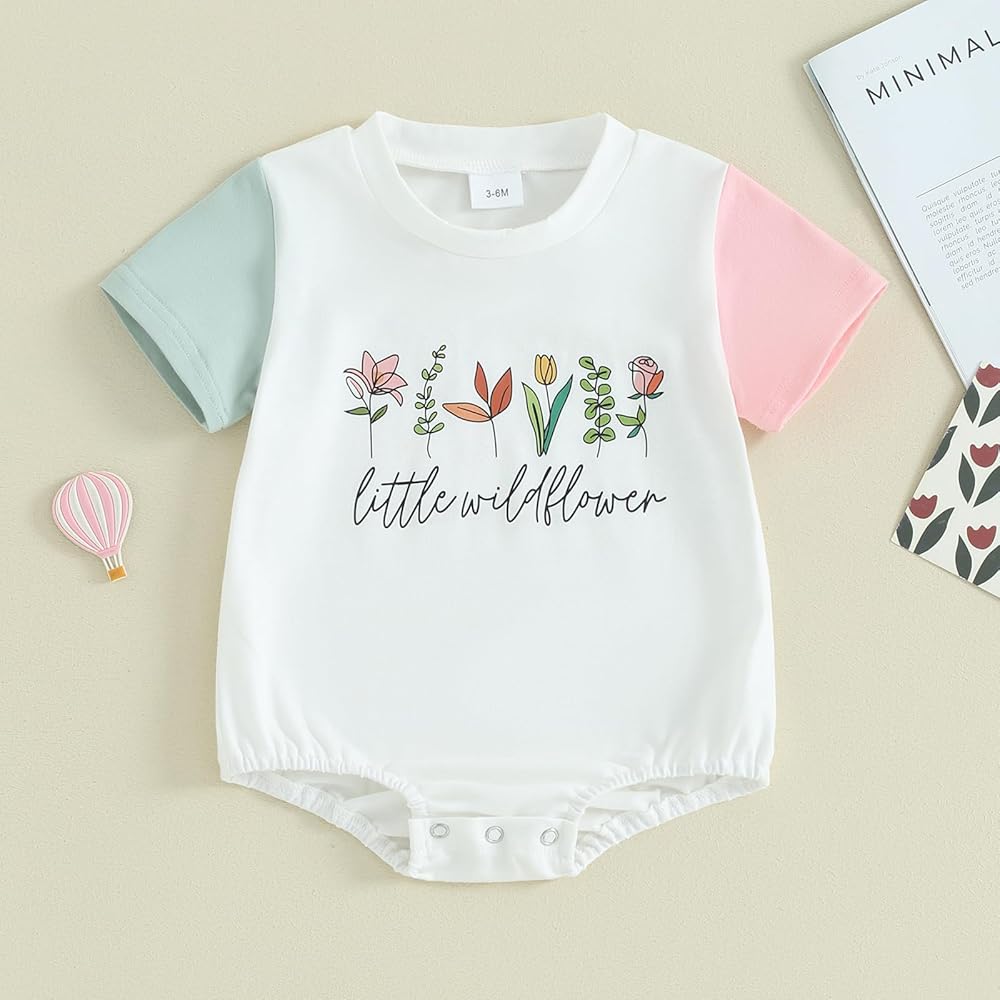 • 🌸 Cute Design: Baby girl summer clothes, little wildflower baby outfit, little wildflower baby clothes, the one-piece romper features contrast color patchwork short sleeves, crewneck, loose fit, snap up, floral&funny letters print, retro style, super adorable and fashionable!