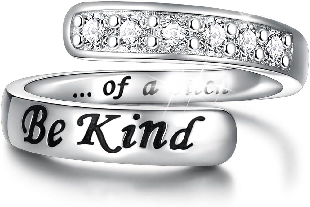 Spread some kindness - with a side of sass! Our Be Kind ...of a b ring with sparkling stone, making it the perfect way to make a statement without saying a word. Let kindness be your superpower - with a bit of snark to back it up!
