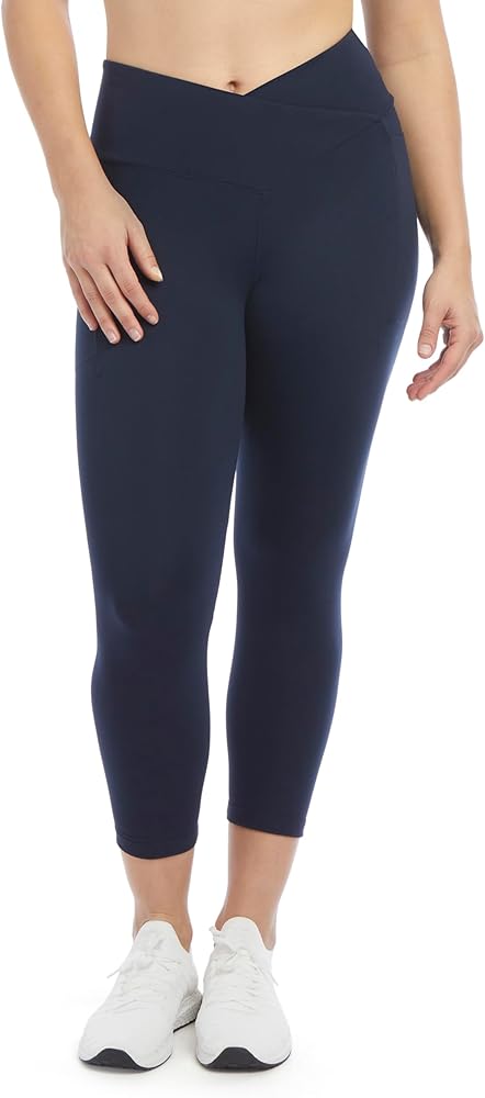 Add these Danskin Endurance Crossover Waist Crop Leggings to your workout essentials. These high rise leggings are great for the gym and pair well with any outfit for a stylish comfortable look. Sweat-wicking fabric helps keep you dry and comfortable and stretch fabric allows you to move freely. Featuring a crossover high rise waistband that will stay in place, convenient side phone pockets, 22'' inseam, and super soft, breathable fabrication. This style comes in a variety of colors.