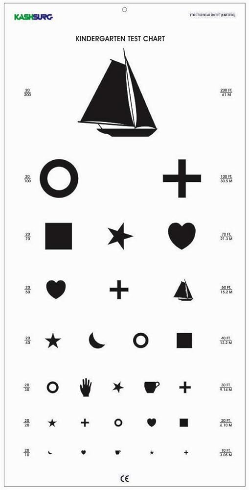 Snellen Traditional Eye Chart 20 Feet and Kindergarten Eye Chart 20 Feet with Eye Occluder Combo Pack Size 22 x 11 Inches.