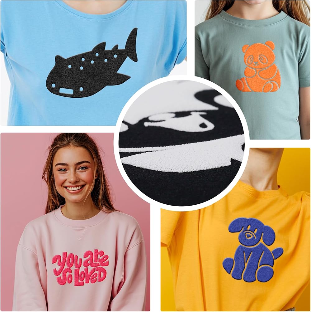 استخدام واسع: مصنوعة من مادة البولي يوريثان الصديقة للبيئة بنسبة 100%، ويمكن استخدام المكواة البيضاء المنتفخة على الفينيل بأمان لتزيين الملابس والإكسسوارات. سواء كان تي شيرت أو حقيبة، يمكنك بسهولة إظهار أسلوبك الفريد.