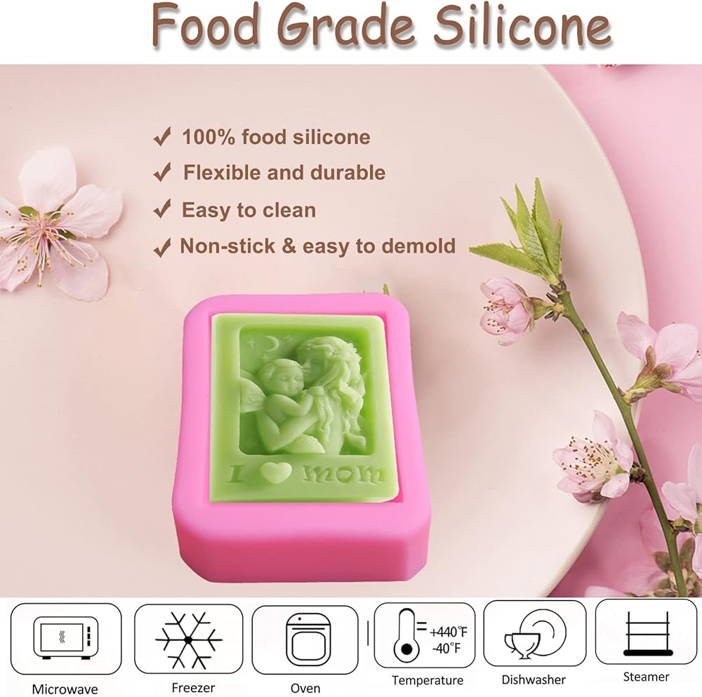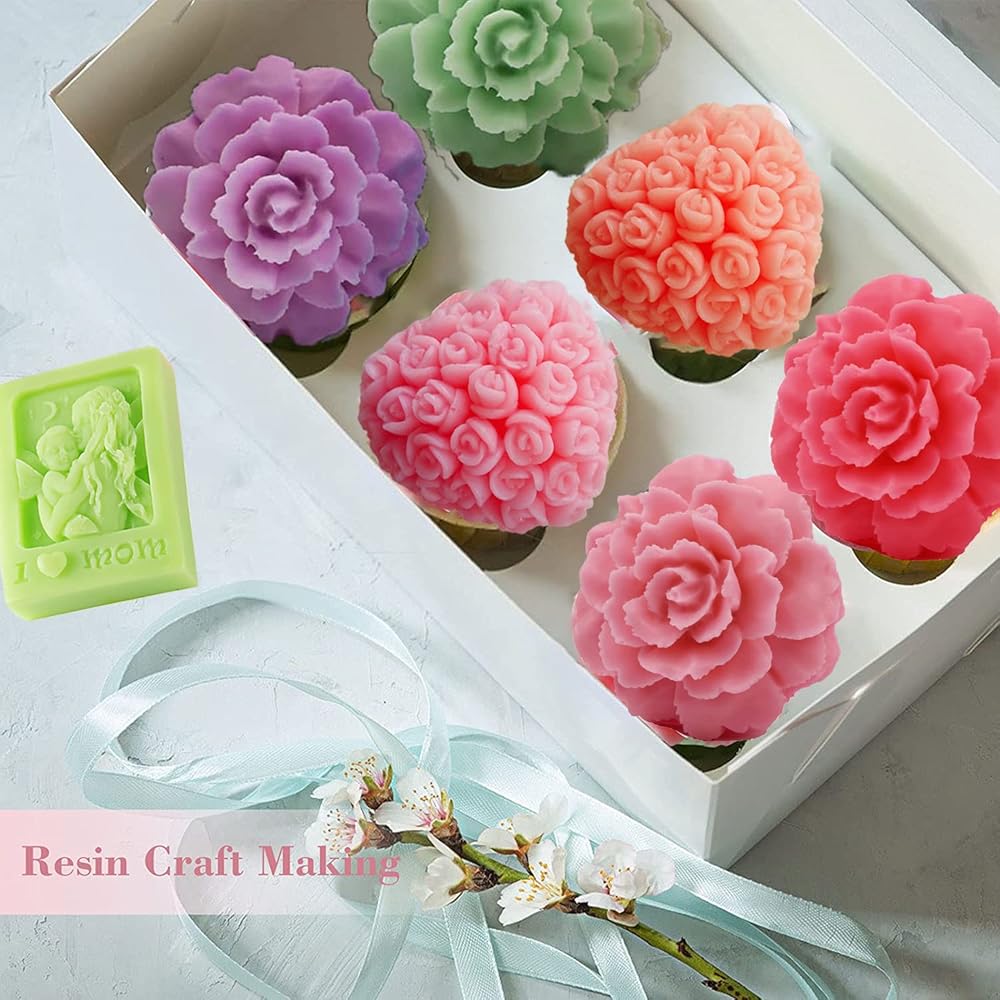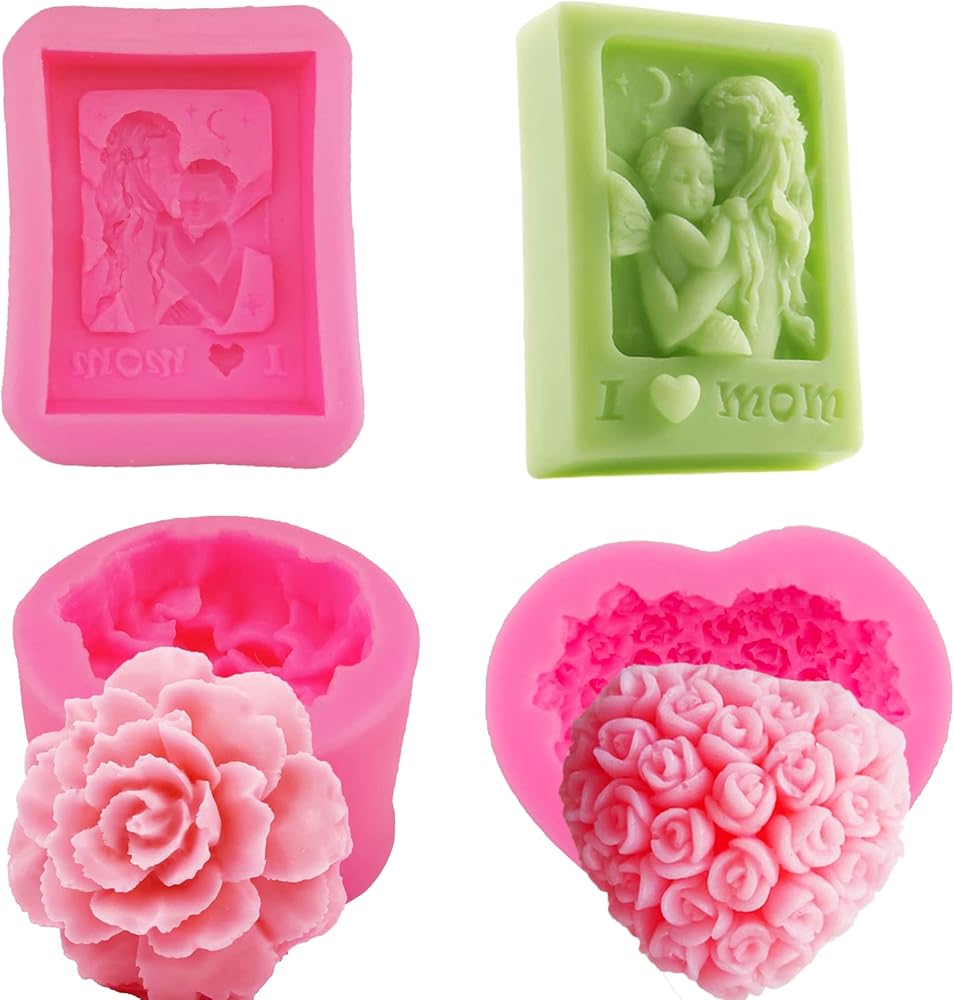 3 قطع عيد الأم فندان سيليكون قالب 3D روز قرنفل سيليكون قالب الأم الطفل الحب شكل قلب صابون فندان قالب الكعكة الراتنج قالب شمعة لحلوى الشوكولاته هدية عيد الأم تزيين الكعكة