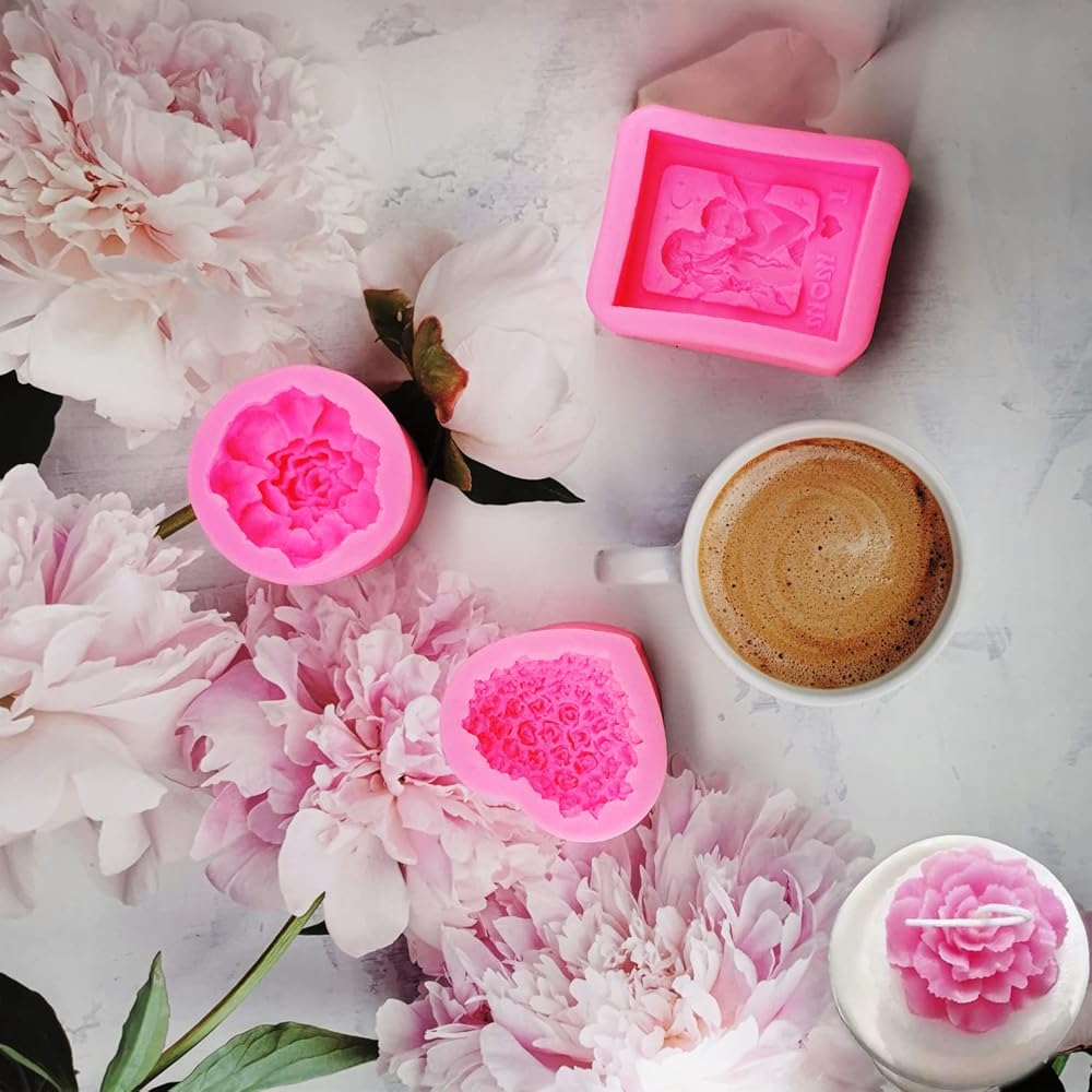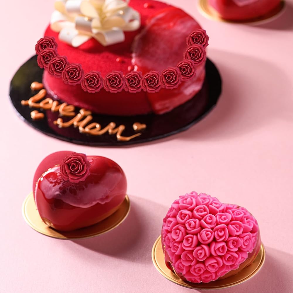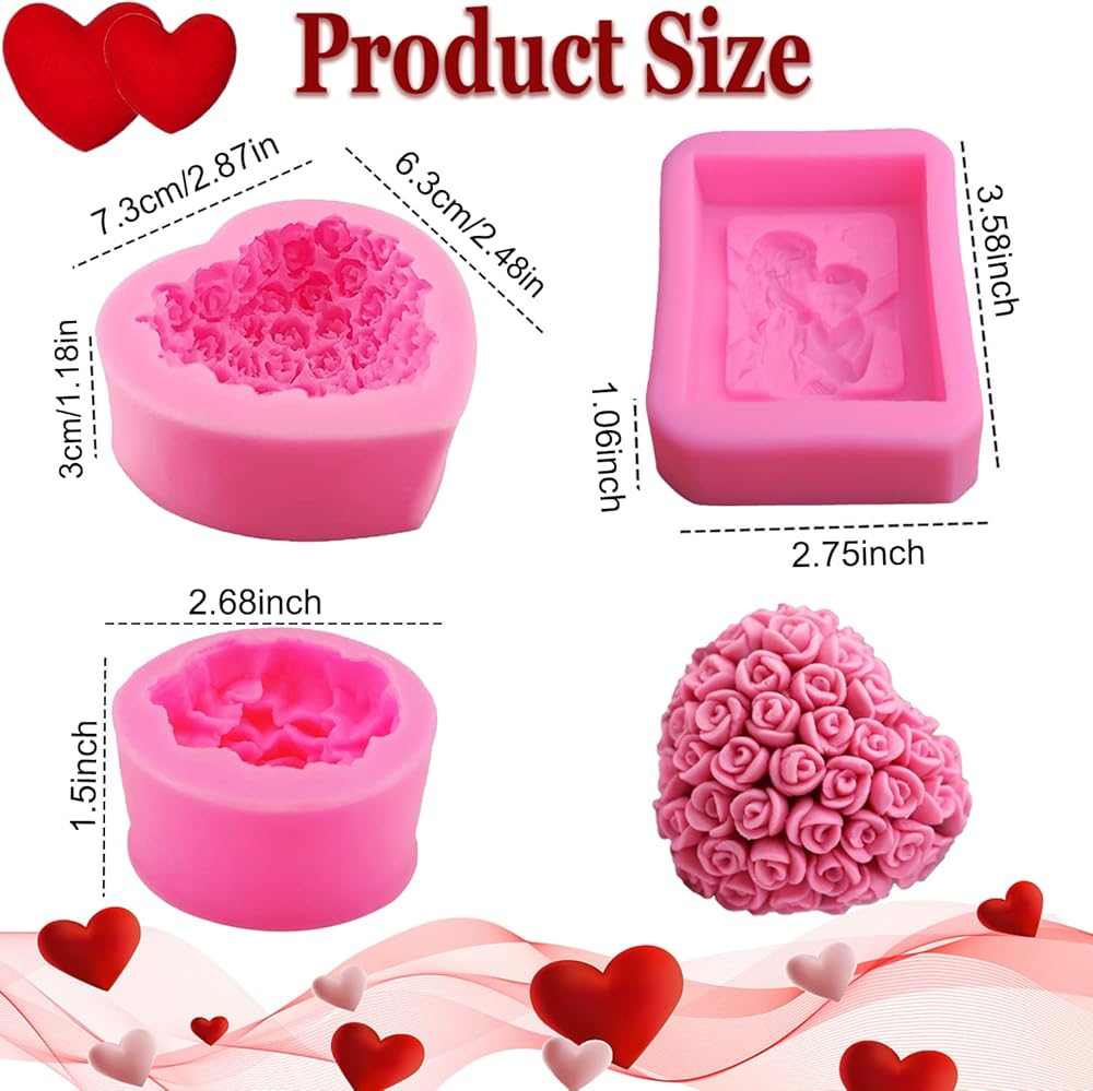 JJzxwish 3 PACK Silicone 3D Rose Flower Heart Molds DIY Fondant Sugar Pudding Soap Candle Mould