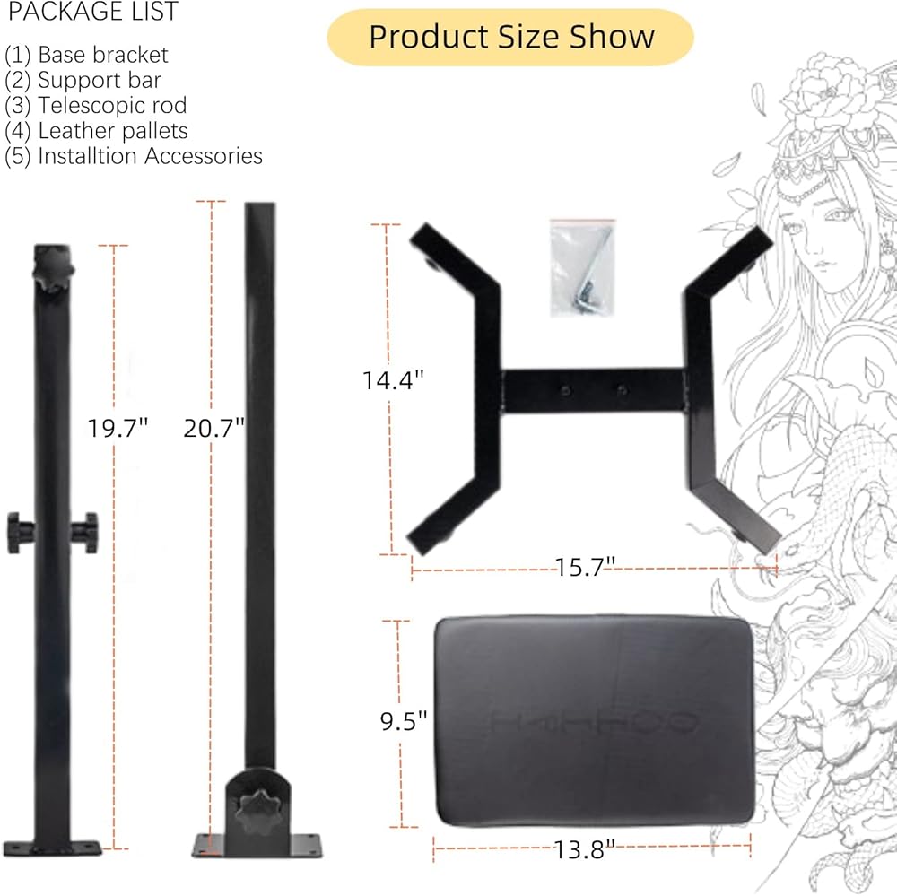 خامة فاخرة: مسند ذراع الوشم مع وسادة ناعمة وسميكة، يمنحك الراحة للذراعين والساقين والقدمين. غطاء جلد البولي يوريثان سهل التنظيف. دعامة ذراع من الفولاذ المقاوم للصدأ، تعمل على تحسين قوة الضغط، وتمنع الانحناء، والثبات القوي والوظائف الأخرى