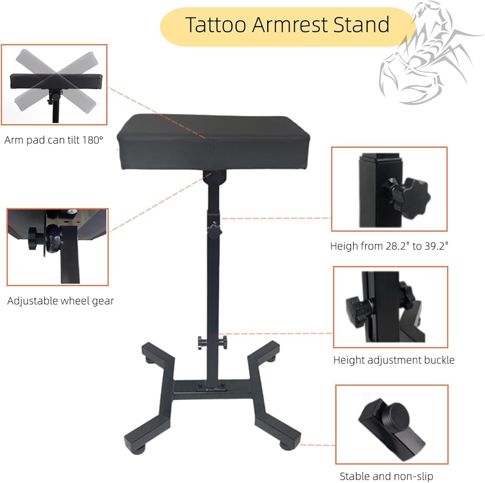 الاستخدام على نطاق واسع: يستخدم حامل الوشم على نطاق واسع في الصالونات والاستوديوهات، وهو مثالي لصالونات الوشم الاحترافية أو فنان الوشم الشخصي. يوفر التصميم المريح الراحة للذراعين والقدمين