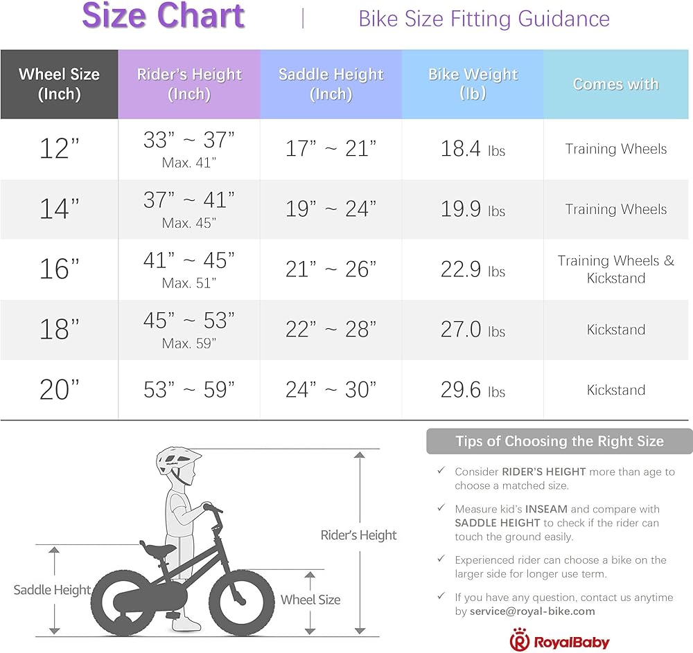 🏁 ALWAYS RELIABLE. RoyalBaby bike complies with the CPSC and EN71 standards, and is trusted by millions of families in over 80 countries globally. Customers will be provided with high-level warranty and local 24 hours service when contacting RoyalBaby Service for any queries.
