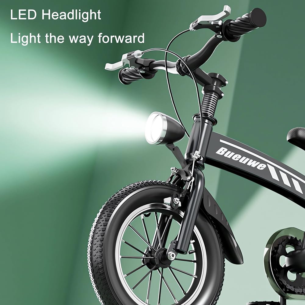 LED HEADLIGHTS FOR SAFETY AND EXCITEMENT: Our kids' bicycle comes equipped with LED headlights, not only illuminating the path but also acting as warning signals. Designed for day and night exploration, it ensures your child remains visible and secure during their cycling adventures.