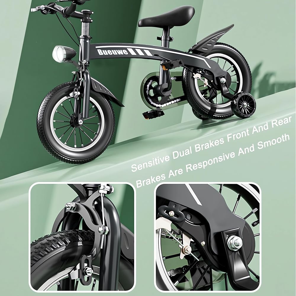 MORE THAN A BIKE, IT'S AN ADVENTURE: Our 14-inch kids' bike with training wheels is designed for little explorers aged 3-7, ready to embark on thrilling journeys. It features stable removable training wheels and a captivating 5CM flash auxiliary wheel for stability and style.