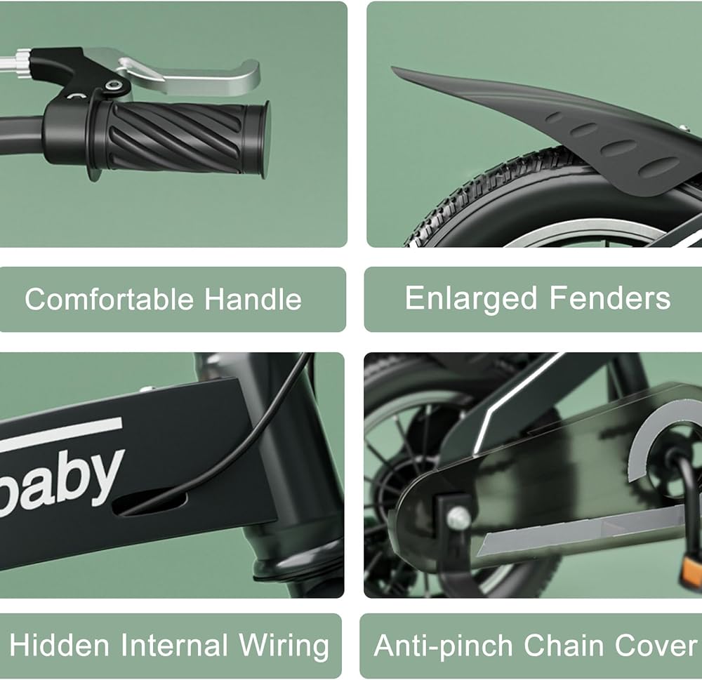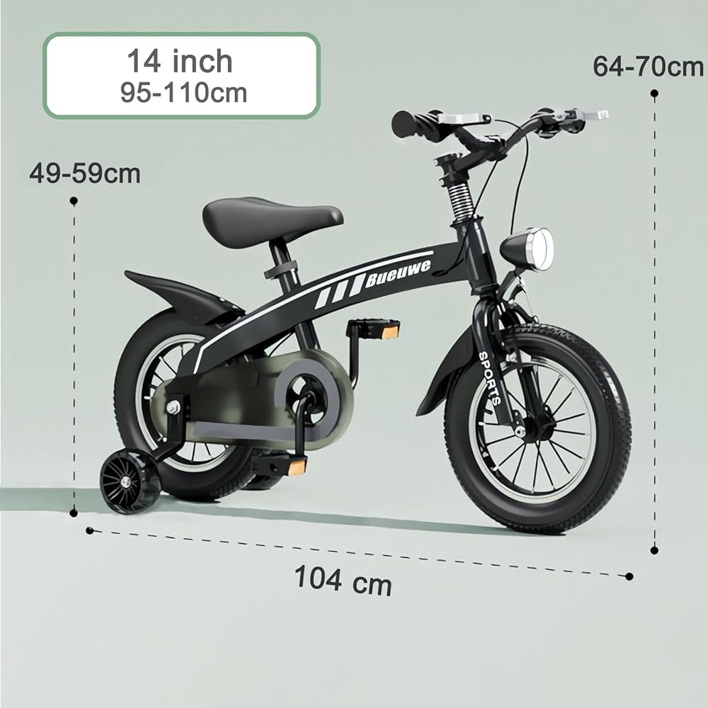 DURABLE, STYLISH, AND ADVENTUROUS: Our 14-inch bike with training wheels features a high carbon steel frame for lightweight yet unwavering durability. The widened racing tires, equipped with anti-skid capabilities and wear-resistant large-grain rubber, conquer various terrains with ease. Whether on the sidewalk or off-road, our bike ensures a smooth and thrilling riding experience.