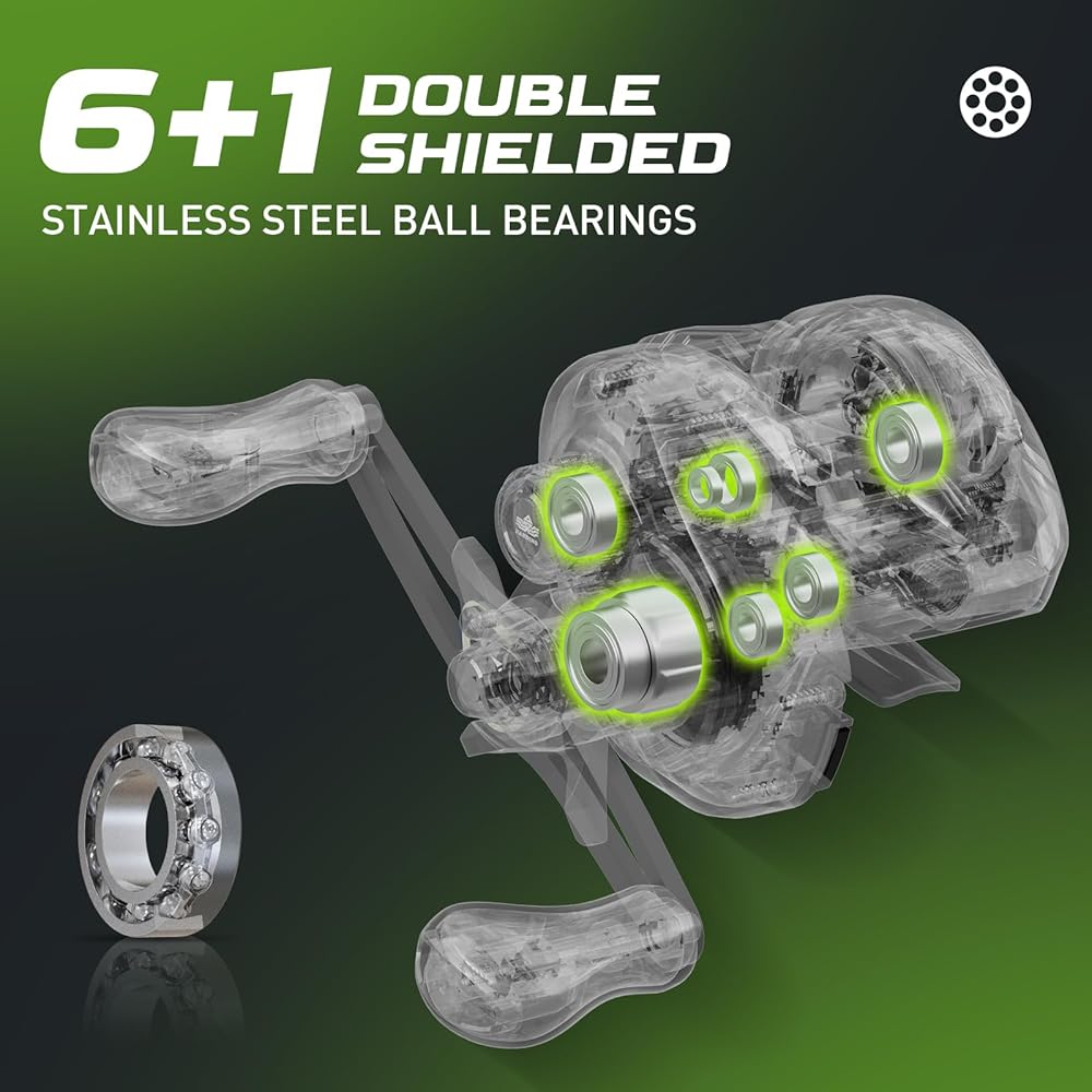 ناعمة - تتميز بكرات بايتكاستر M1 بنسبة تروس عالية السرعة 7.2:1 ومحامل كروية من الفولاذ المقاوم للصدأ مزدوجة الحماية 6+1 من أجل استرجاع سريع وفعال وأداء فائق السلاسة مع كل دورة للمقبض.