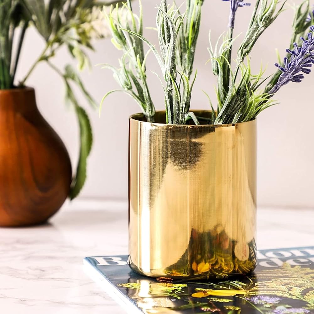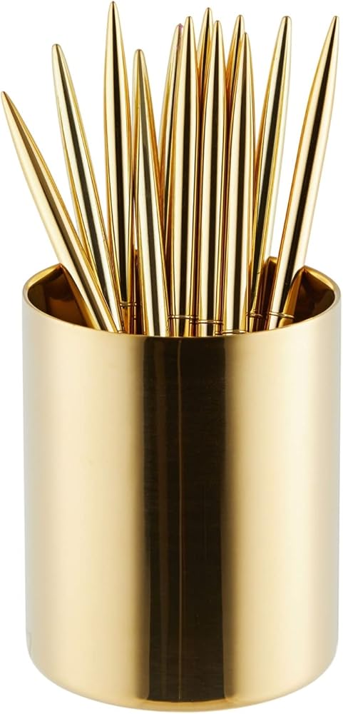 حامل أقلام ذهبي: احتفظ بالأقلام وأقلام الرصاص وأقلام التحديد واللوازم المكتبية الصغيرة منظمة وفي متناول اليد باستخدام حامل القلم الذهبي هذا للمكاتب