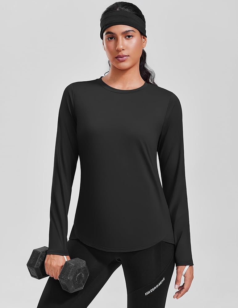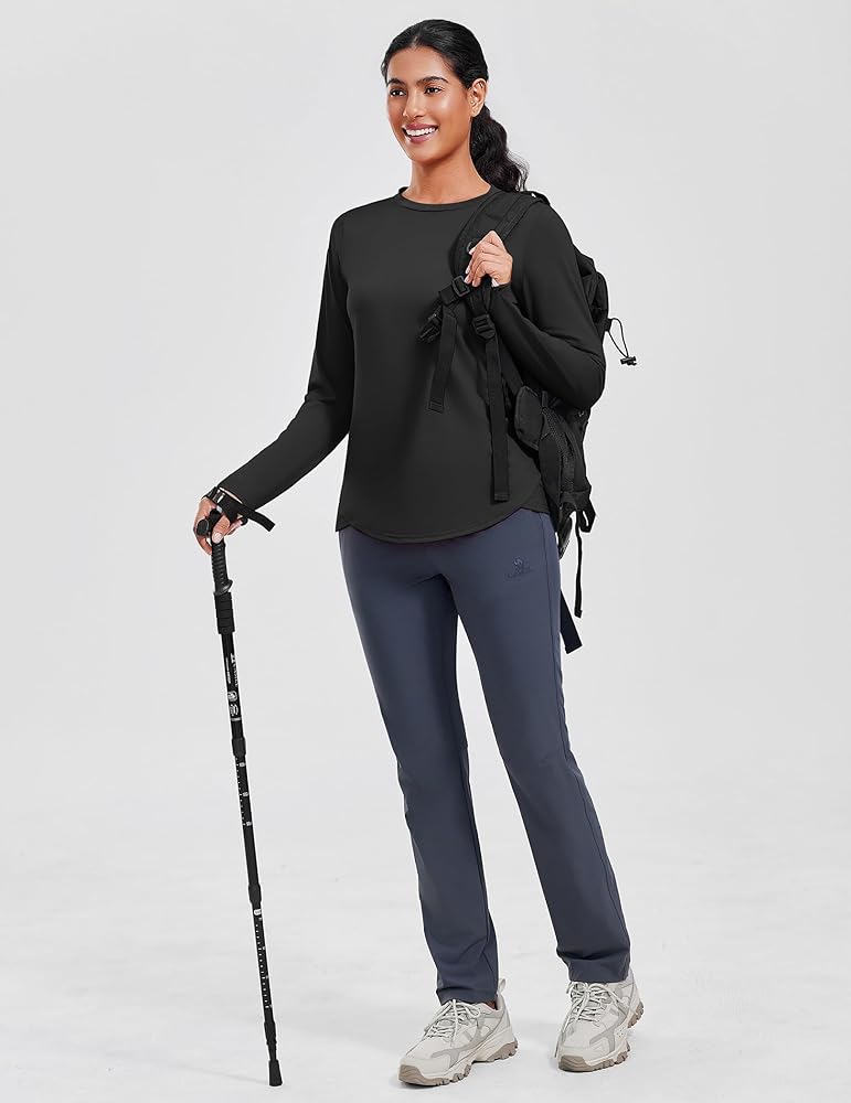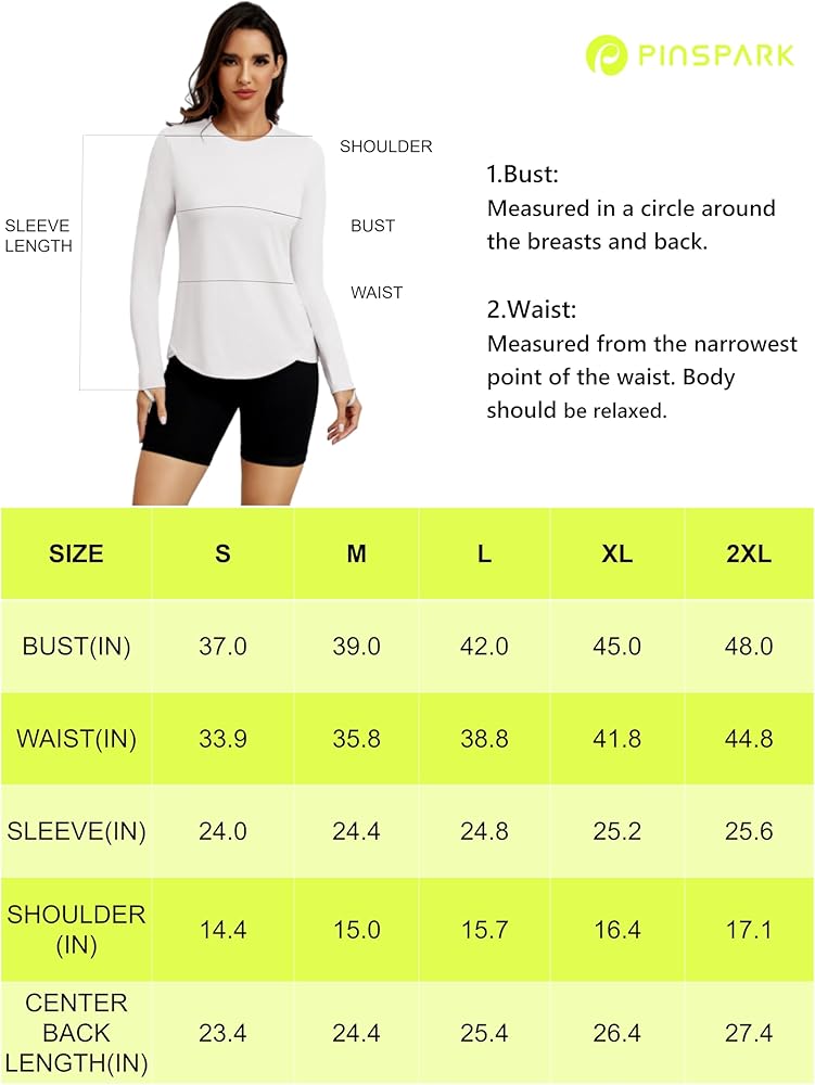 PINSPARK قميص نسائي للشمس بأكمام طويلة قمصان للمشي سريعة الجفاف مع فتحات إبهام بعامل حماية من الأشعة فوق البنفسجية 50+ قمصان للتمرين للجري في الهواء الطلق