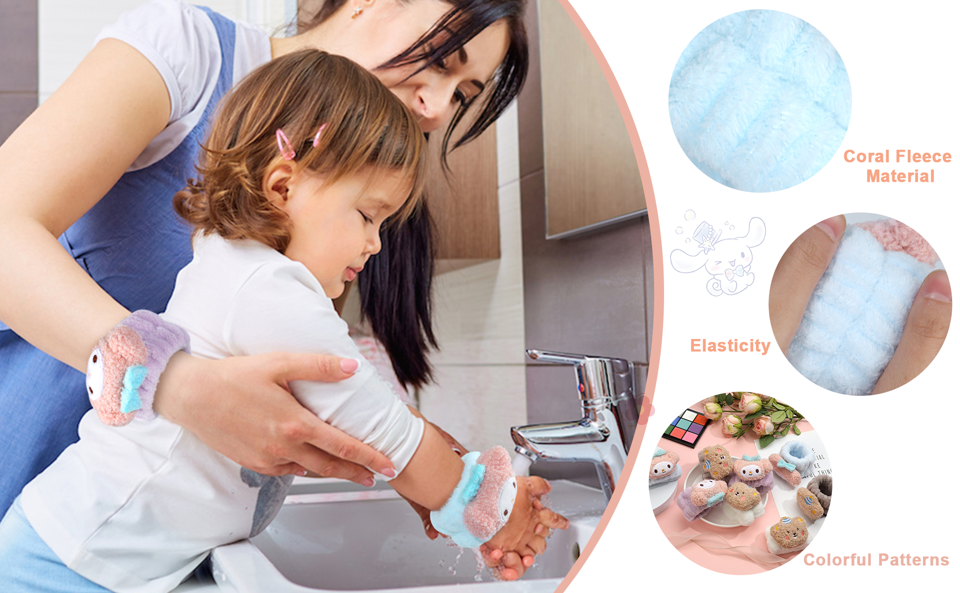 تجفيف سريع - أساور المعصم المخصصة لغسل الوجه مصنوعة من مادة الألياف الدقيقة عالية الكثافة، ومع تقنية النسيج الخاصة، تكون سرعة التجفيف أسرع بنسبة 20% من المنتجات المماثلة.