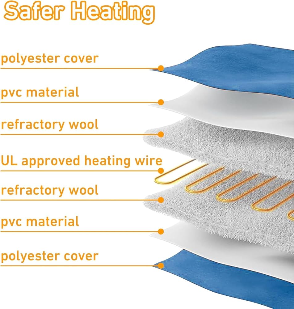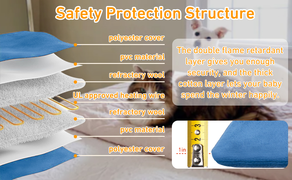حماية من انقطاع التيار الكهربائي: يمكن لسرير الحيوانات الأليفة المُدفأ في الداخل مع التحكم في درجة الحرارة للحماية من انقطاع التيار الكهربائي تجنب ارتفاع درجة الحرارة لحماية حيواناتك الأليفة. ولكن يرجى إبقاء وسادة التدفئة للقطط مسطحة أثناء الاستخدام (حاول عدم طيها أكثر من 90 درجة عند استخدام سرير الحيوانات الأليفة الساخن في الهواء الطلق).