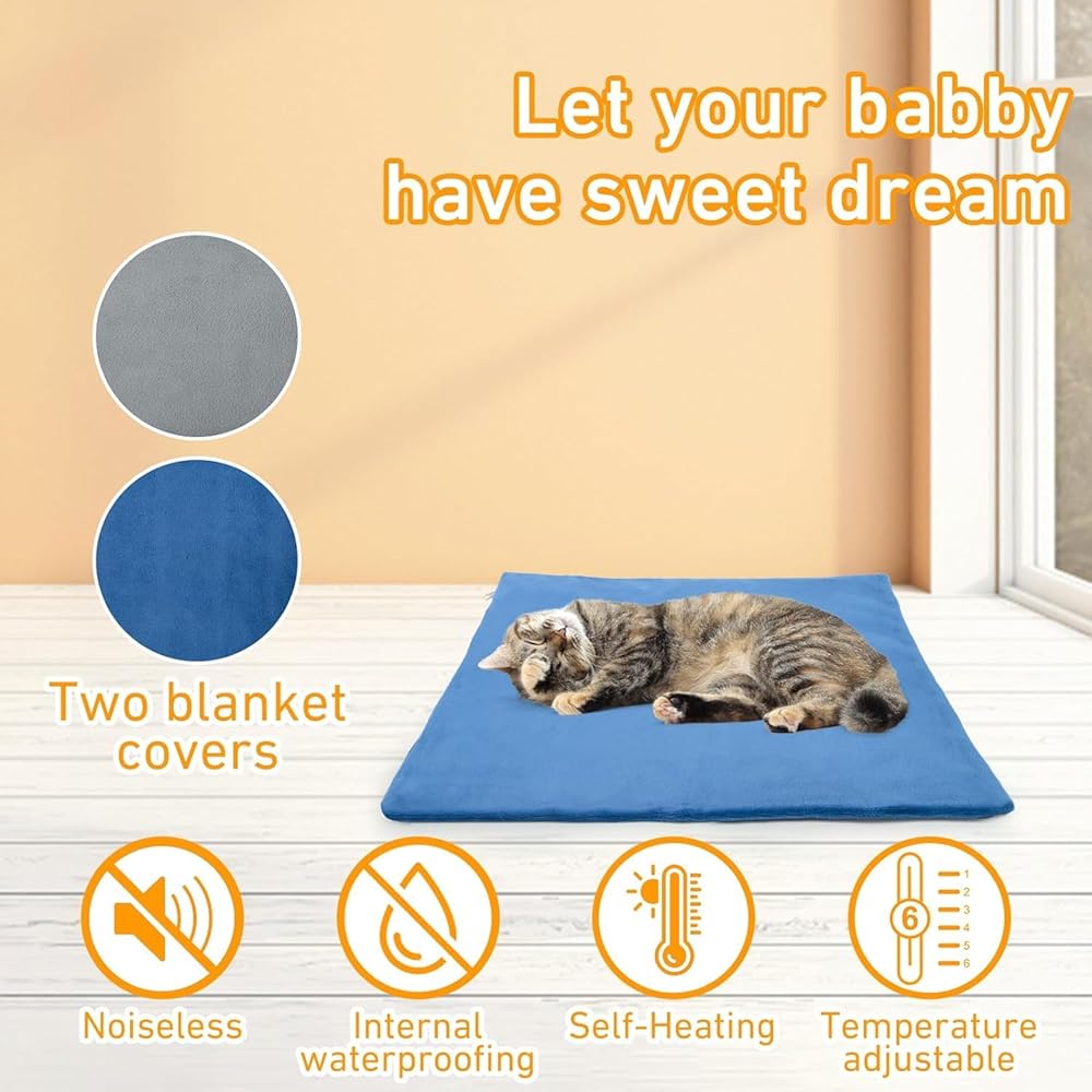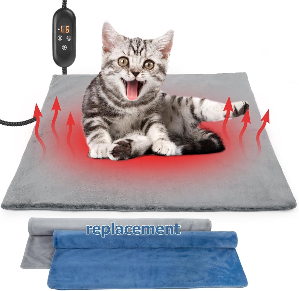 وسادة التدفئة للقطط مع مؤقت: يمكن أن توفر وسادة القطط ذاتية التسخين الكهربائية مع وظيفة المؤقت نطاق إغلاق تلقائي من 4 إلى 24 ساعة. يعتبر سرير الكلاب المُدفأ أكثر أمانًا في الاستخدام، ولكن يُرجى عدم السماح لحيوانك الأليف بالاستلقاء على سرير القطط المُدفأ بدون غطاء من القطيفة لمنع الحروق من ارتفاع درجة الحرارة.