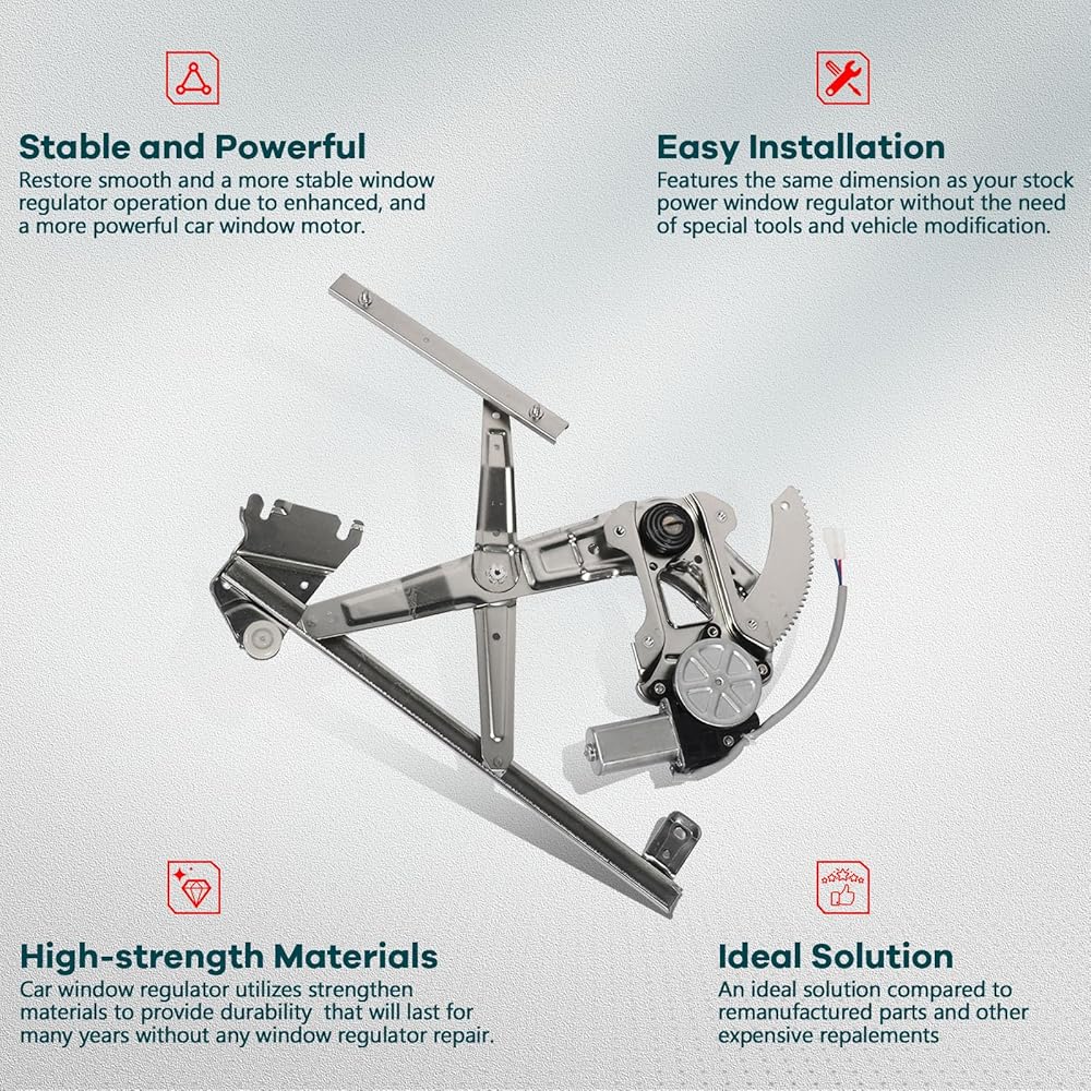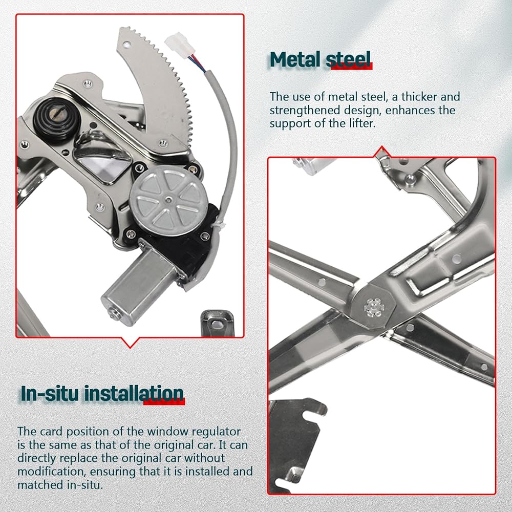 - مكونات معززة: محرك النافذة الأمامي الأيسر مصنوع من سلك فولاذي سميك ولوحة فولاذية، والتي تتمتع بقدرة تحمل أقوى، وهي قوية وثابتة وتعمل بسلاسة.