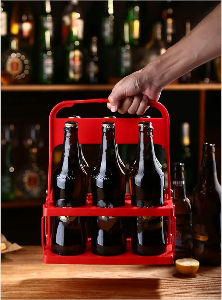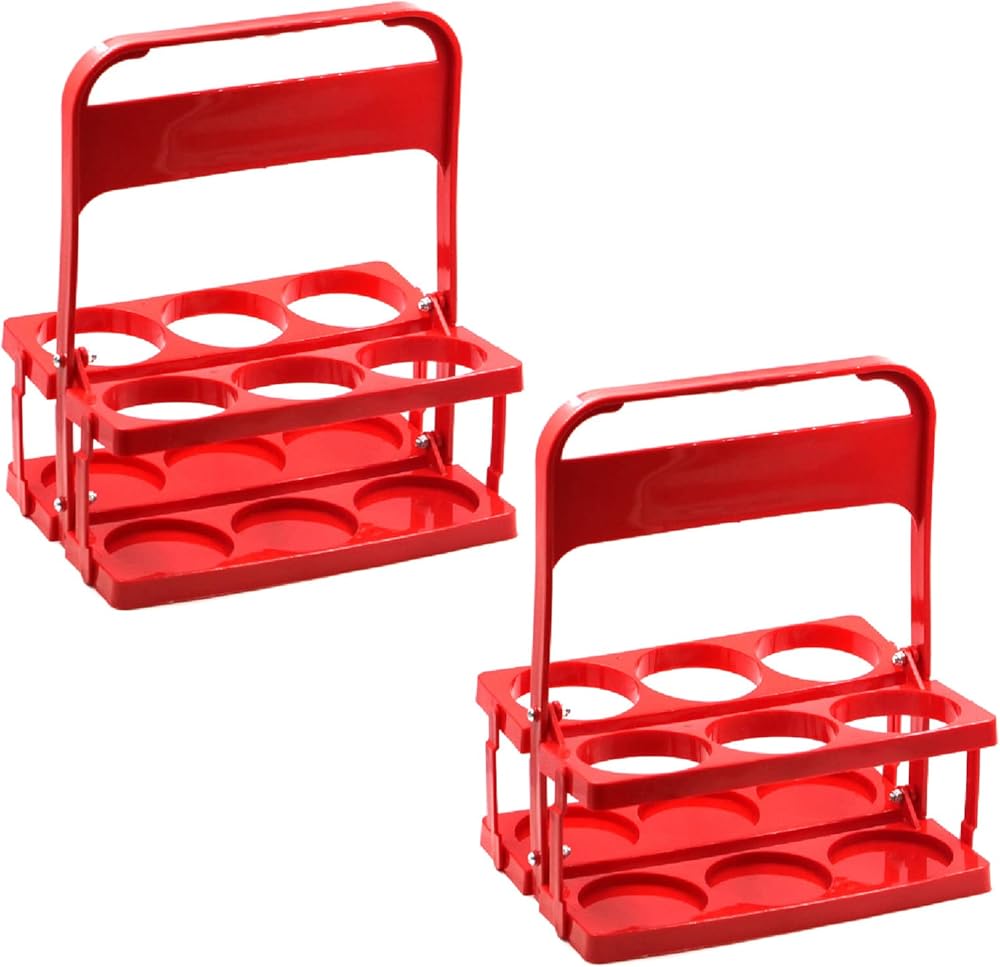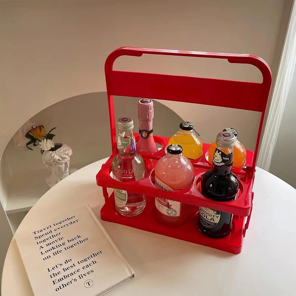 LONG TAO 2 قطعة حامل مشروبات بلاستيكي قابل للطي وقابل لإعادة الاستخدام وحامل زجاجات المشروبات وصينية حامل أكواب مع مقبض لتقديم الطعام والمطاعم والحفلات وتنظيم المطبخ (أحمر)