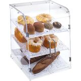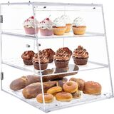 صندوق خبز أكريليك شفاف ممتاز من MyGift مكون من 3 طبقات، علبة عرض معجنات المخابز من الفئة الاحترافية مع صواني قابلة للإزالة وأبواب خلفية مغناطيسية للاستخدام المنزلي أو التجاري