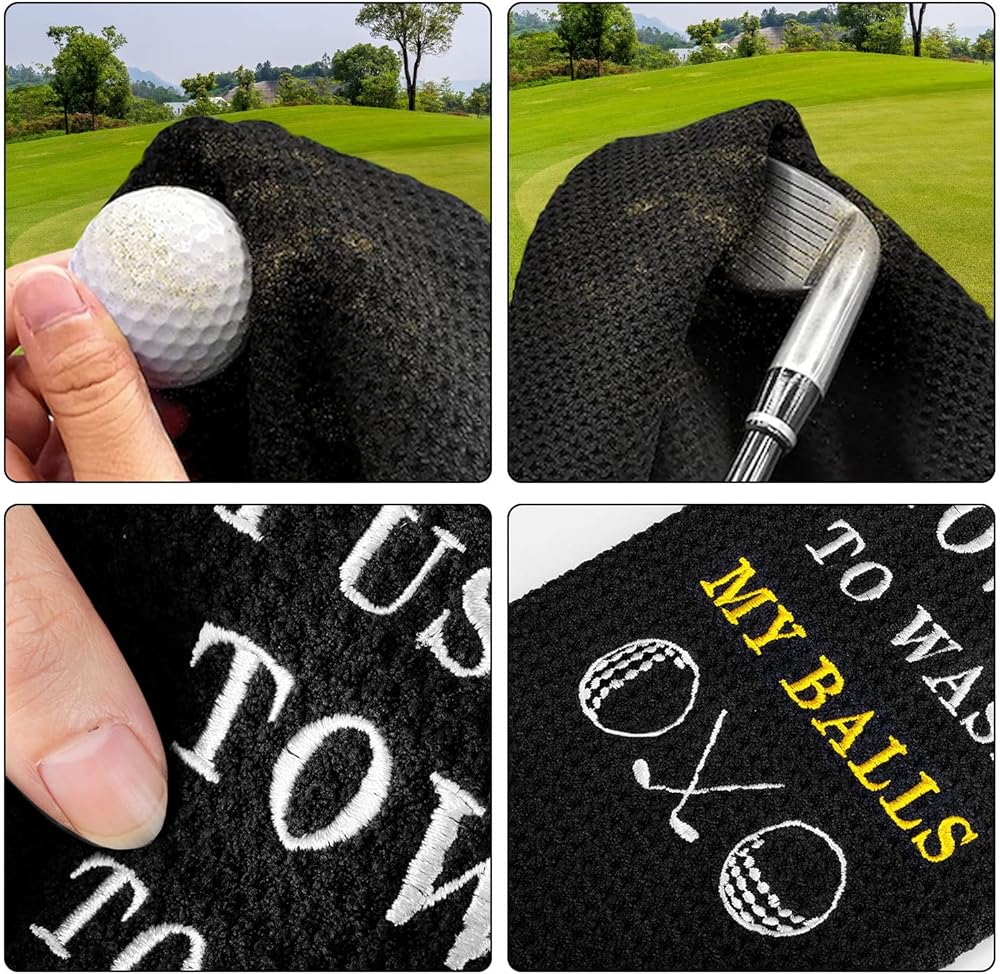 ✔️ المادة: مناشف الجولف المضحكة المصنوعة من الألياف الدقيقة الخاصة بنا سريعة الجفاف، وأكثر نعومة، وأخف وزنًا، ومتينة، وأكثر قدرة على الامتصاص من القطن. سهلة إزالة الأوساخ والرمال والعشب وتجفيف الكرات والنوادي. لا تبهت!