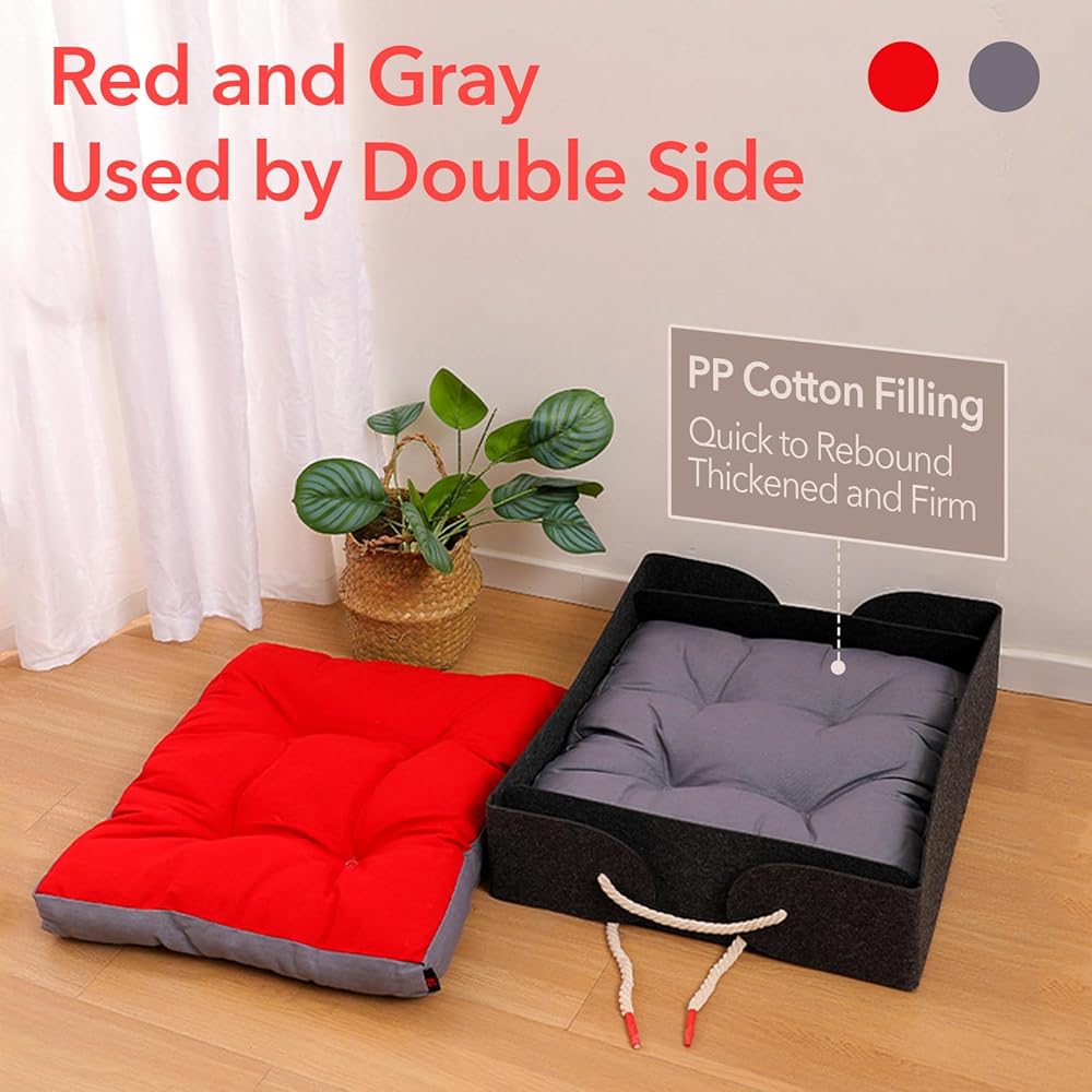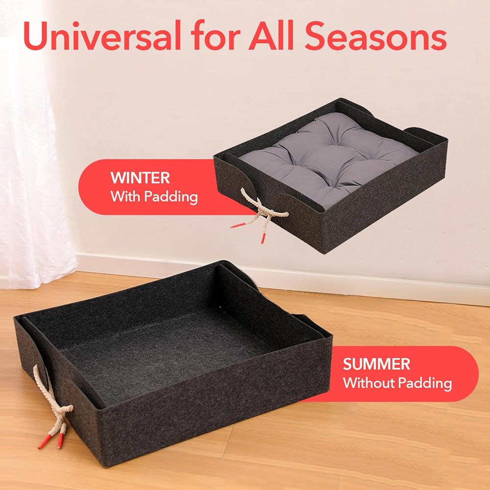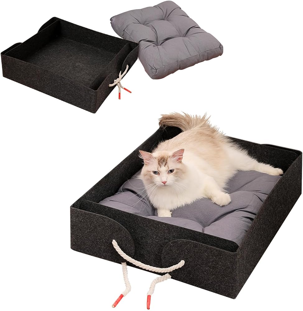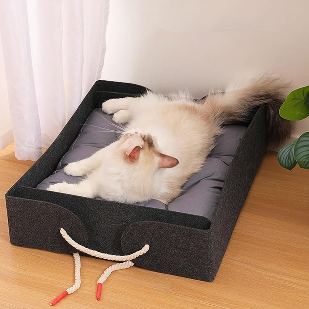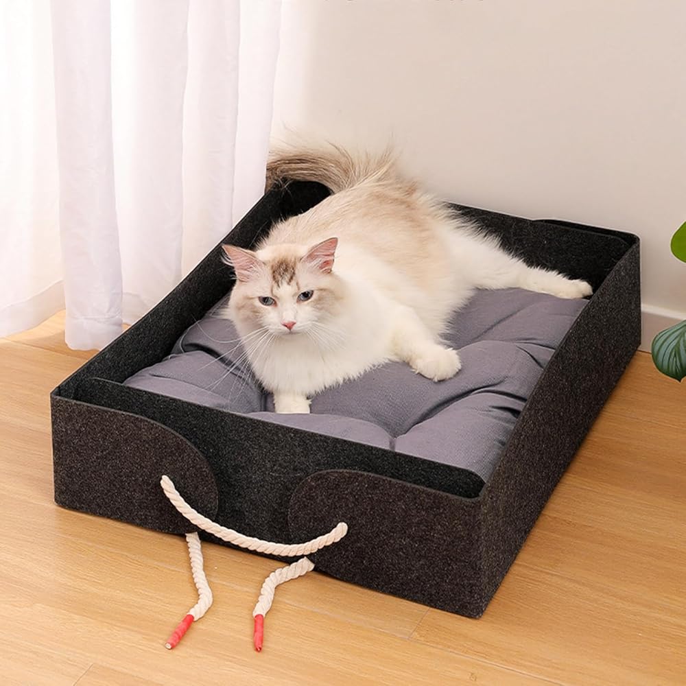 Soft and Cozy Design: The cat bed is crafted with soft, high-quality felt material, providing a cozy and comfortable sleeping surface for your furry friend. The soft cotton-covered design adds an extra layer of warmth and texture, making it perfect for cats to snuggle up and relax.