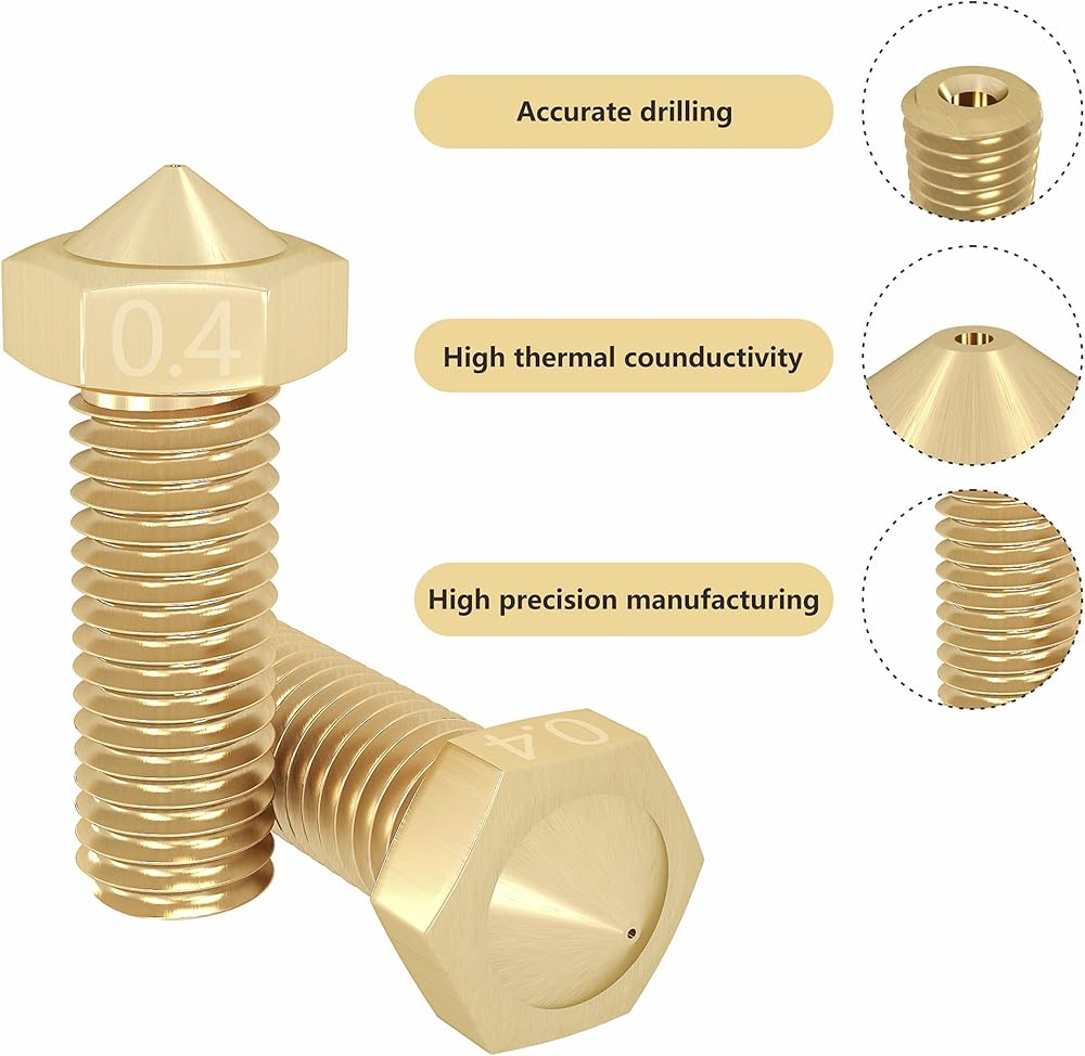 The M6 volcano nozzles bottom of the nozzle is flat and fits perfectly with the throat, and effectively avoids material leakage.The bringht appearance and clear font will accurately recognize the aperture size for better printing.