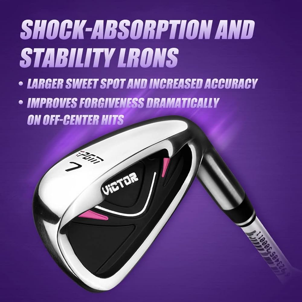 لقد جعلت التصميمات الجديدة مجموعة مضرب الجولف الكاملة هذه أسهل في الضرب وتحسين سهولة الانطلاق من أي استلقاء على الملعب، مما يضيف مسافة في هذه العملية. يؤدي تحديد الشكل والوزن إلى مزيد من التسامح في مجموعة مضارب الجولف الكاملة الجديدة.
