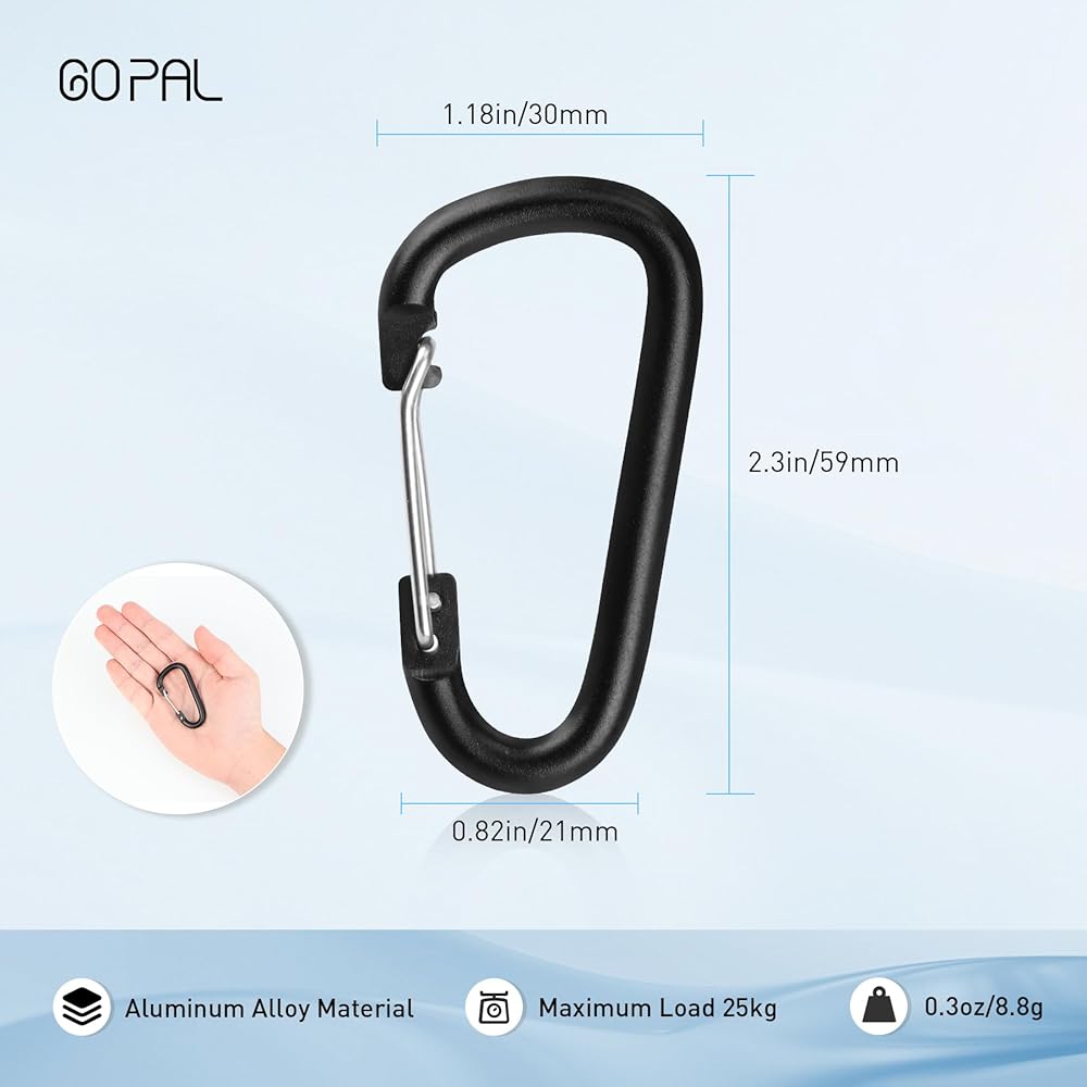 12 قطعة من مشابك Go Pal المصنوعة من الألومنيوم الأسود على شكل حرف D، مشبك حلقة تسلق صغير مقاس 2.3 بوصة، مشبك سلسلة مفاتيح خفيف الوزن، حلقات تسلق صغيرة متعددة الأغراض تستخدم في الأماكن الداخلية والخارجية