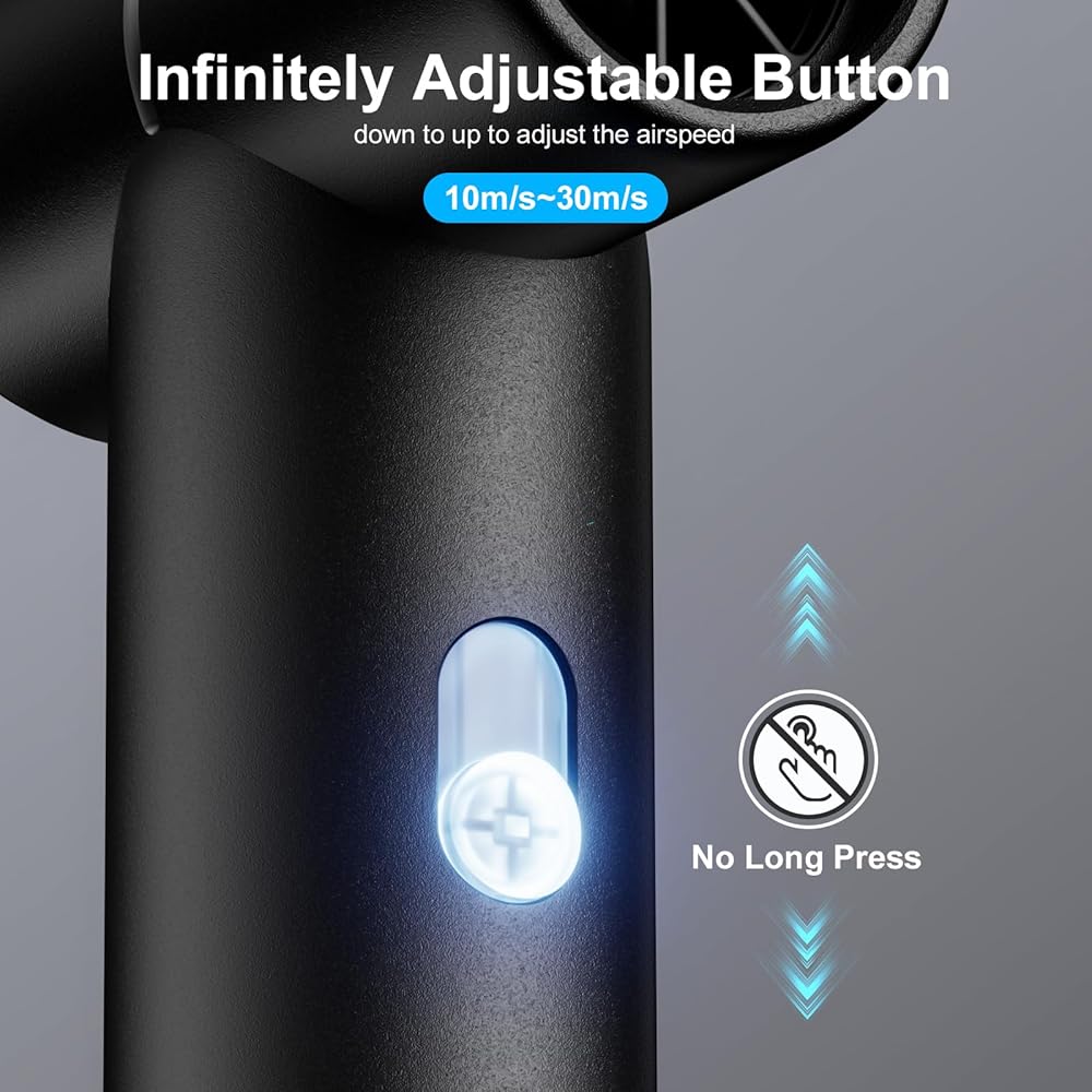 منفضة هواء قابلة للتعديل متعددة السرعات: لا حاجة للضغط لفترة طويلة، تتميز منفضة الهواء المضغوط لدينا بتصميم سرعة قابل للتعديل بشكل لا نهائي، قم بتمرير الزر لضبط سرعة الرياح، وهذه الميزة تسمح للمستخدمين بضبط تدفق الهواء، مما يضمن تنظيفًا دقيقًا وفعالاً. مصممة لتناسب الأسطح والاحتياجات المختلفة، أقل سرعة رياح هي 10 م/ث، والأعلى يمكن أن تصل إلى 30 م/ث، اضغط لفترة طويلة 1.5 ثانية على زر التشغيل/الإيقاف السفلي للعمل