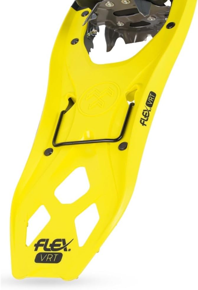 The Flex VRT is our premium composite deck snowshoe designed to deliver high quality performance for backcountry exploration. The DynamicFit 2.0 binding features the BOA Fit System which evenly distributes tension around your boot, combined with EVA foam for the ultimate comfortable and precise fit. The new Flex Torsion Deck technology allows for a natural stride from heel to toe absorbing impact to reduce the amount of stress on joints. At the same time the FLEX tail engages the built in tail traction, keeping the snowshoe tracking and underfoot, making descents a breeze. This deck provides just the right amount of rigidity for side hilling while conforming to the terrain. Paired with aggressive Traction Rails and the Viper 2.0 crampon this snowshoe bites into any snow conditions. Engaging the ActiveLift 19° heel lift this becomes a mountain climbing machine.