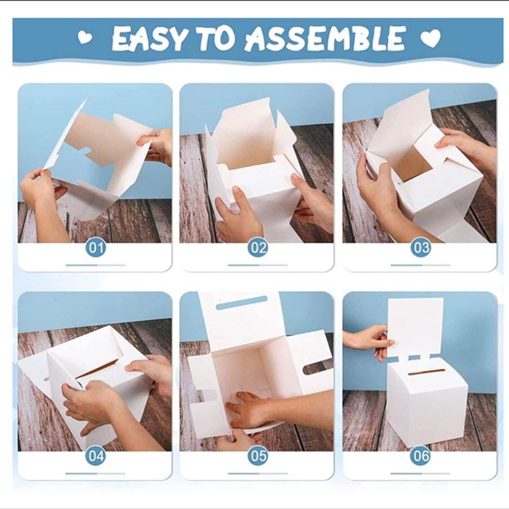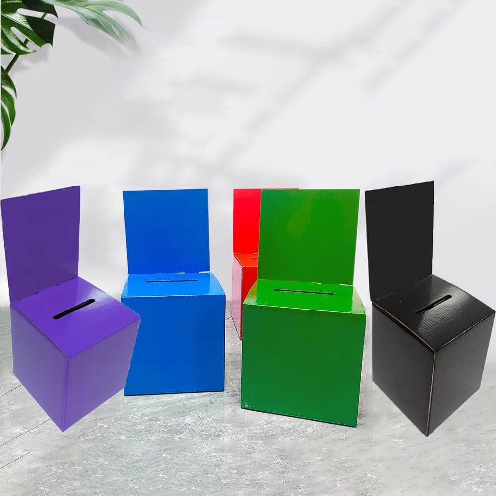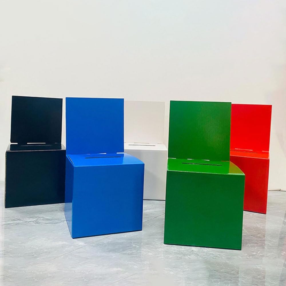 صناديق الاقتراحات سهلة التجميع ولا تحتاج إلى غراء أو أدوات أخرى، ما عليك سوى طي الصندوق فوق التجاويف المموجة