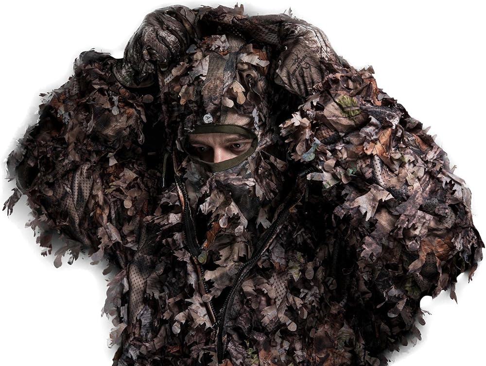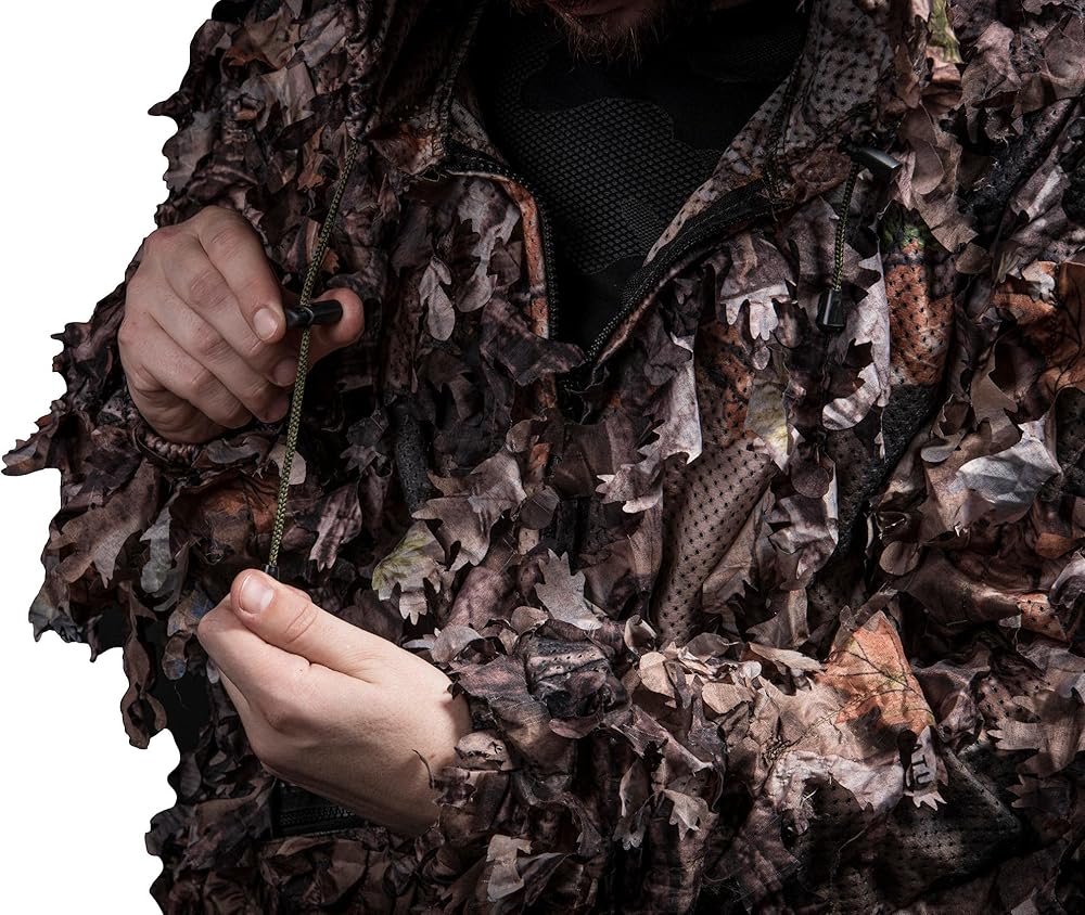 Unlike ordinary camo hunting clothes, this ghillie suit for men & women features double-stitched, full-cut leaves for an incredible camouflage experience; 3D leafy suit with more leaves than any other camo on the market.