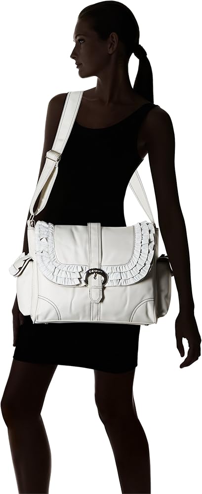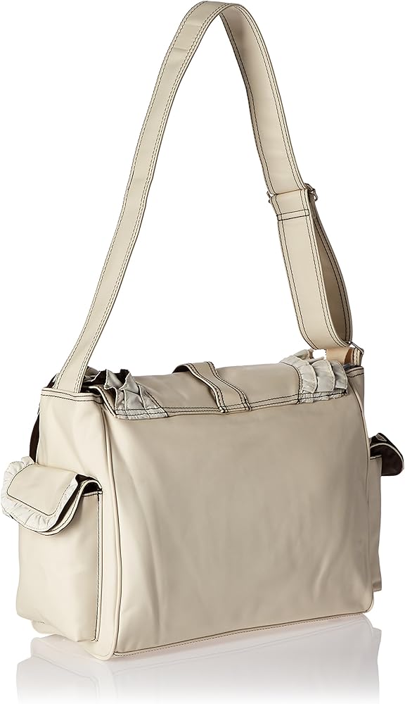 A magnetic clip keeps the top flap closed. Water repellant exterior and interior easily wipes clean. Roomy interior with pockets. Adjustable shoulder strap.
